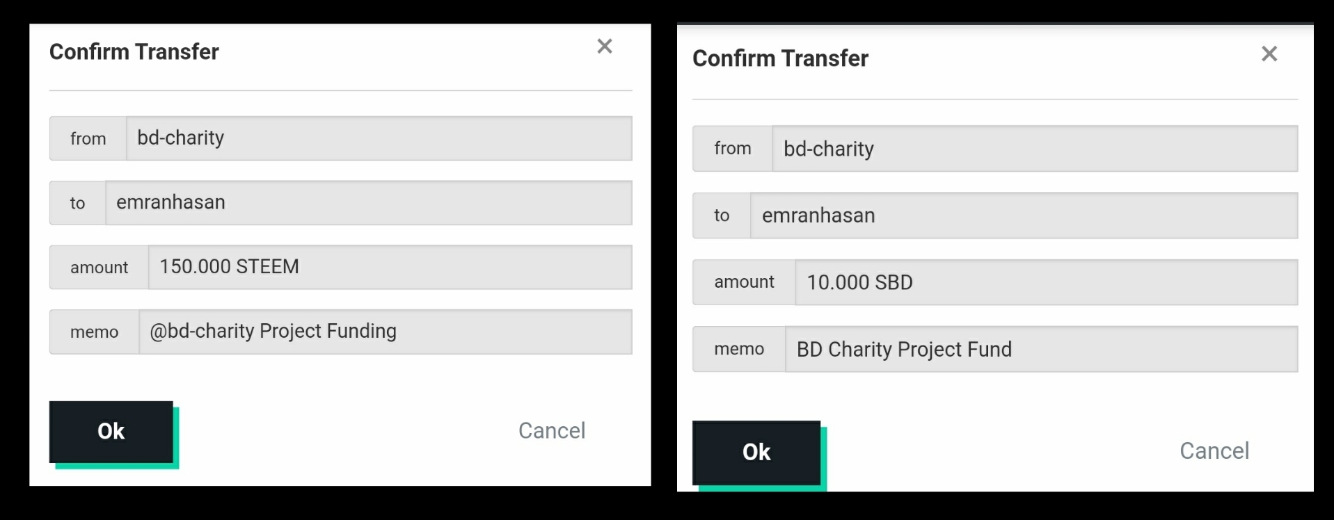 We tried our best to stand with Emran Hasan to continue his children's treatment properly. We had allocated total 150 Steem & 10 SBD and sent these directly to @emranhasan 's wallet.