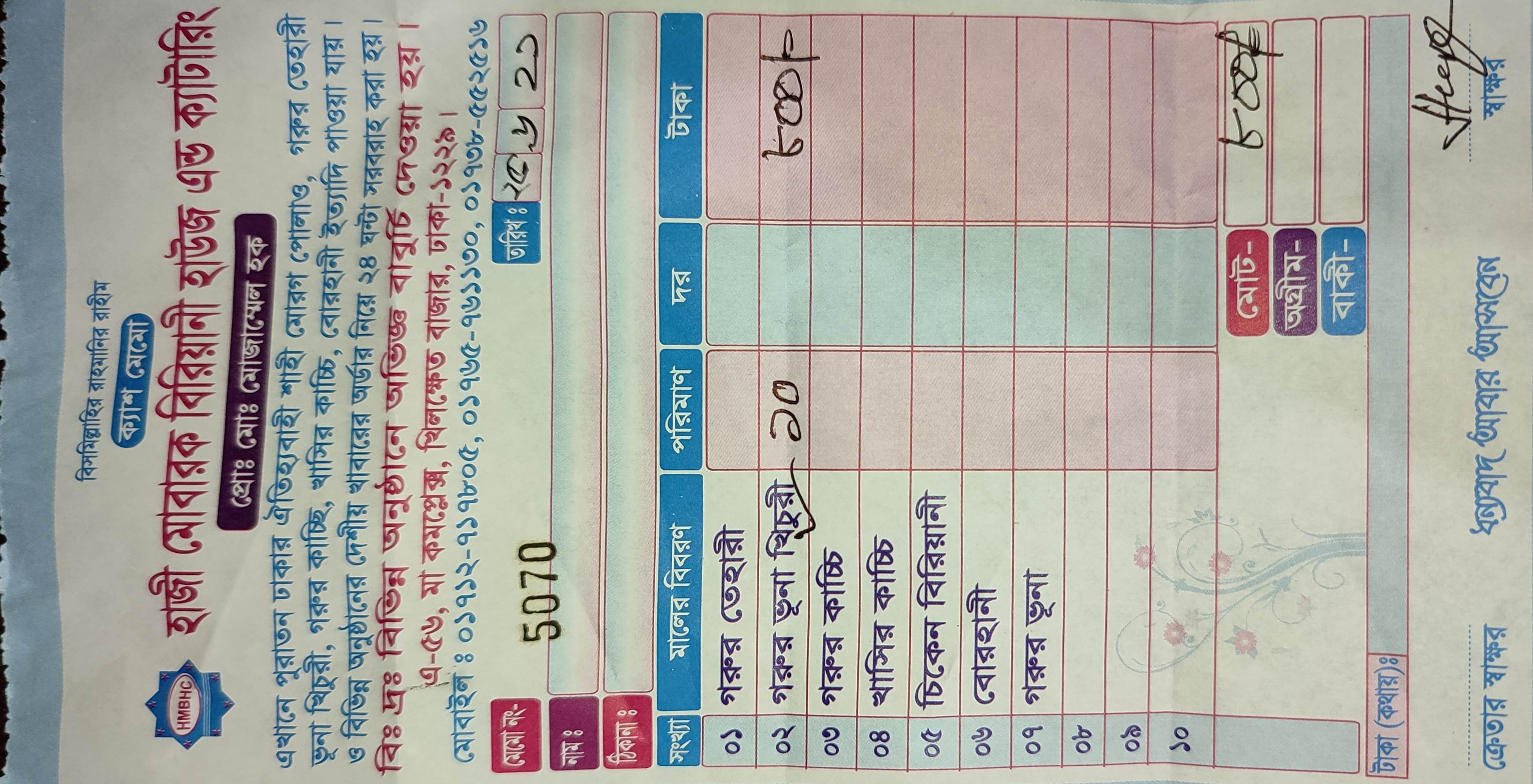 আমরা ১০ প্যাকেট তেহারি অর্ডার করেছিলাম যার দাম আসে-