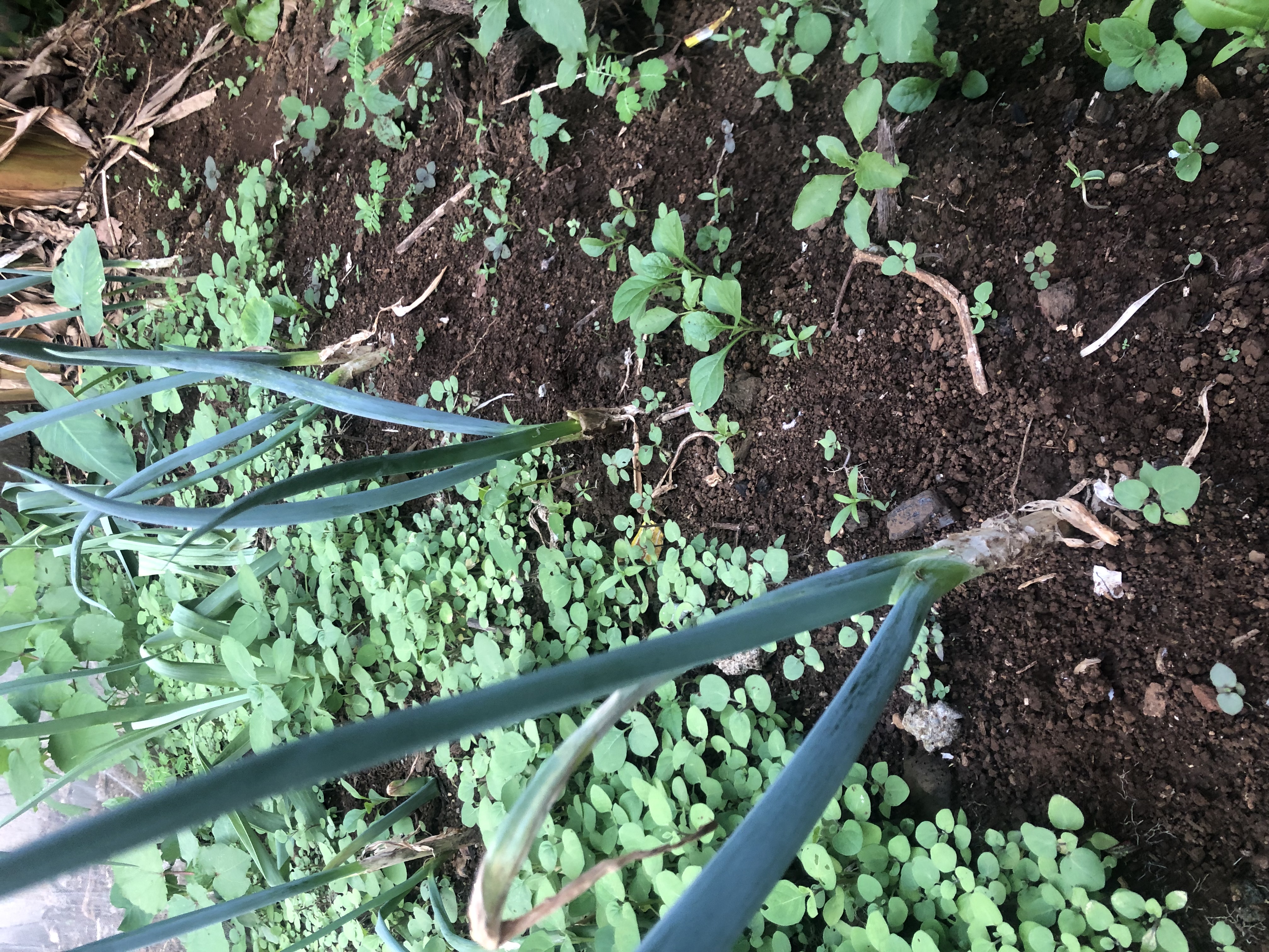 Now I’m left wondering 🤔🤔what exactly is the problem? Someone suggested that I should add manure, which I understand can help improve soil fertility. But I’m not entirely convinced that nutrients are the main issue here. The way the leaves are being eaten makes me suspect pests. At the same time, the weakening of the leeks and dying onions could point to something happening in the soil, maybe disease, poor drainage, or even overwatering.