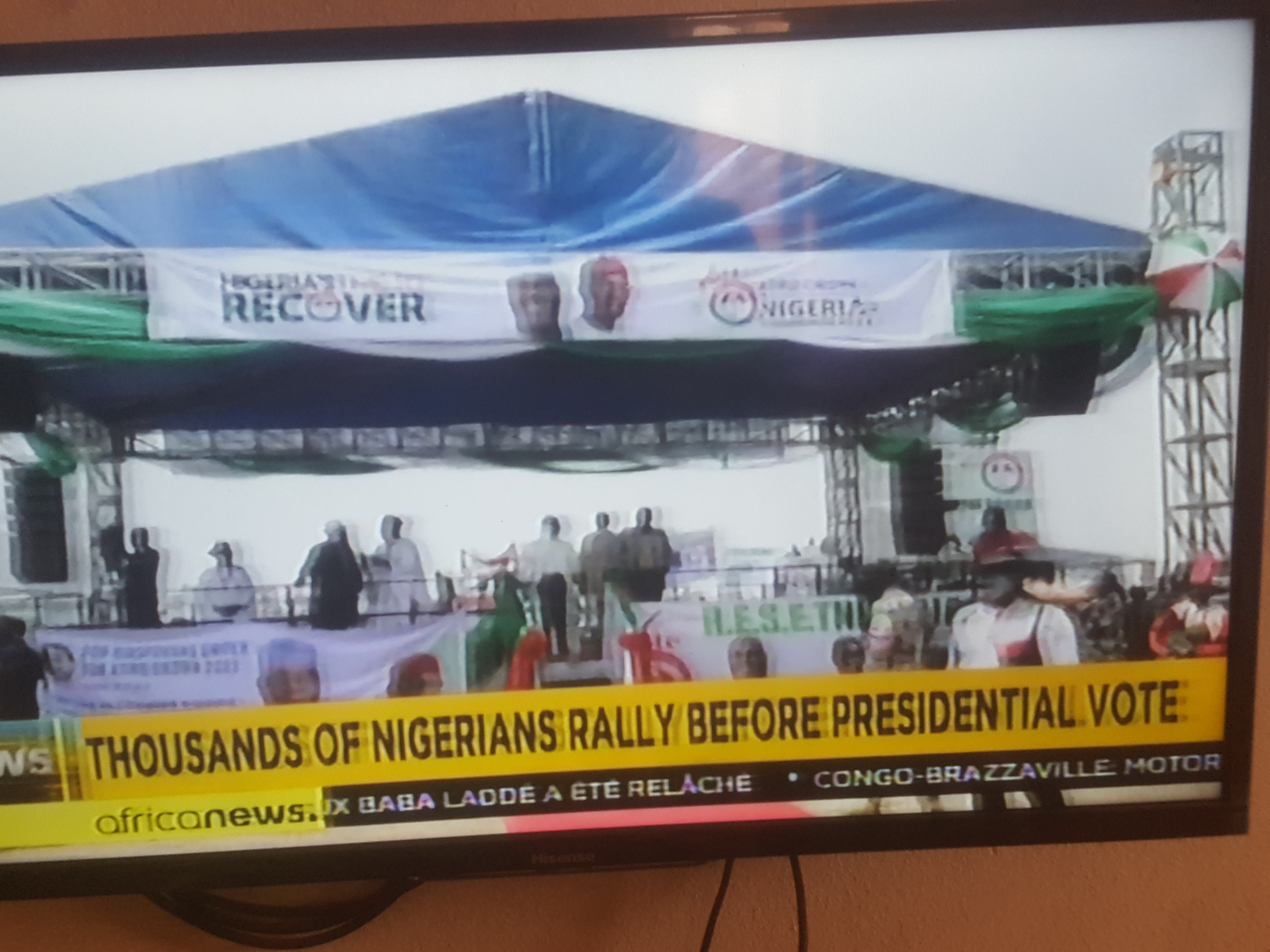 On the African news channel, we see how thousands of Nigerians rally at campaign venues to prepare for the upcoming presidential elections.