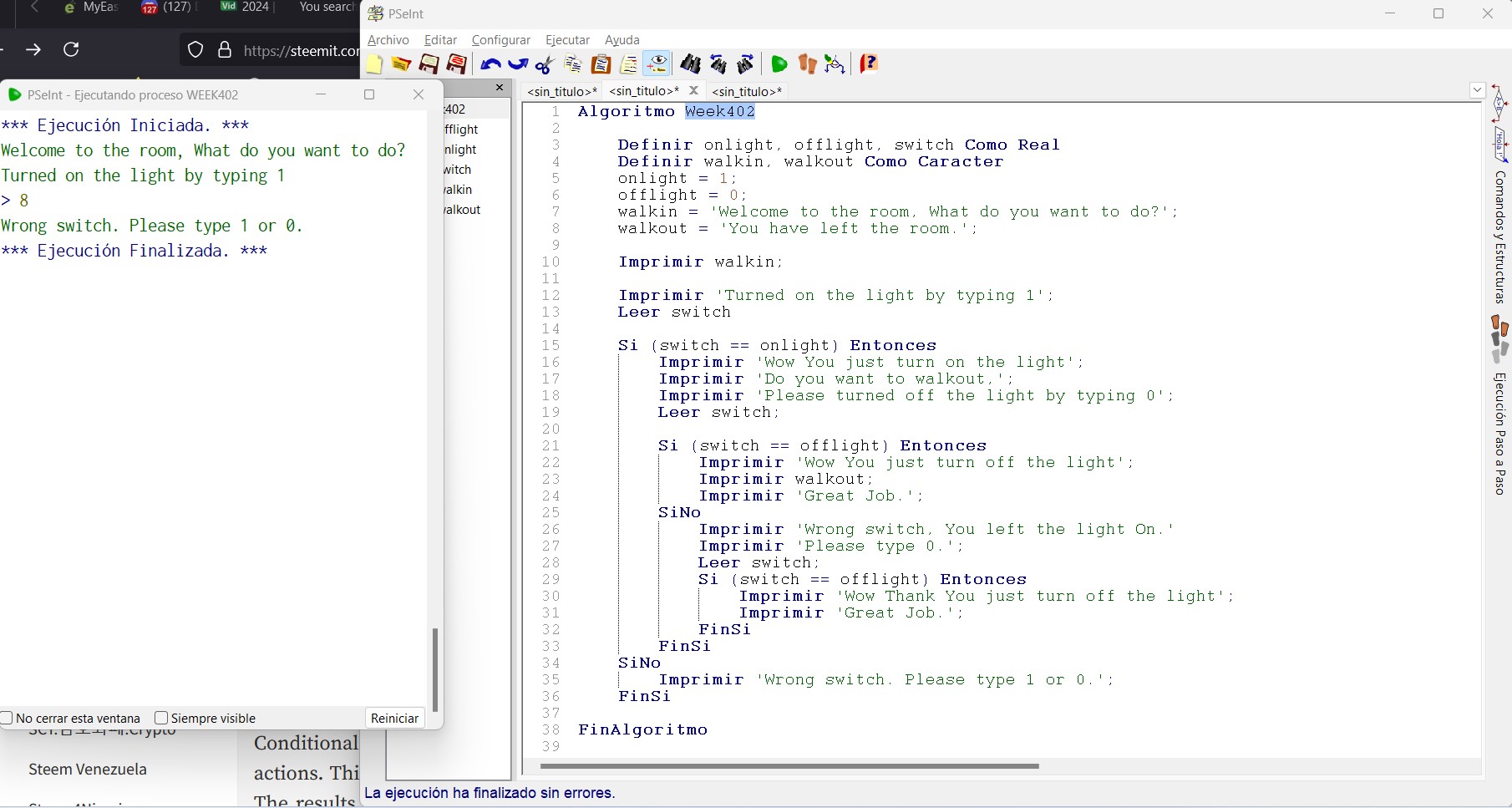 Here, I will define variables that will hold the values of each of the directions in which the switch is moved. Note a switch can only go two ways, that on or off. So I will make use of the condition structure to check if someone in the room has switched on the light.