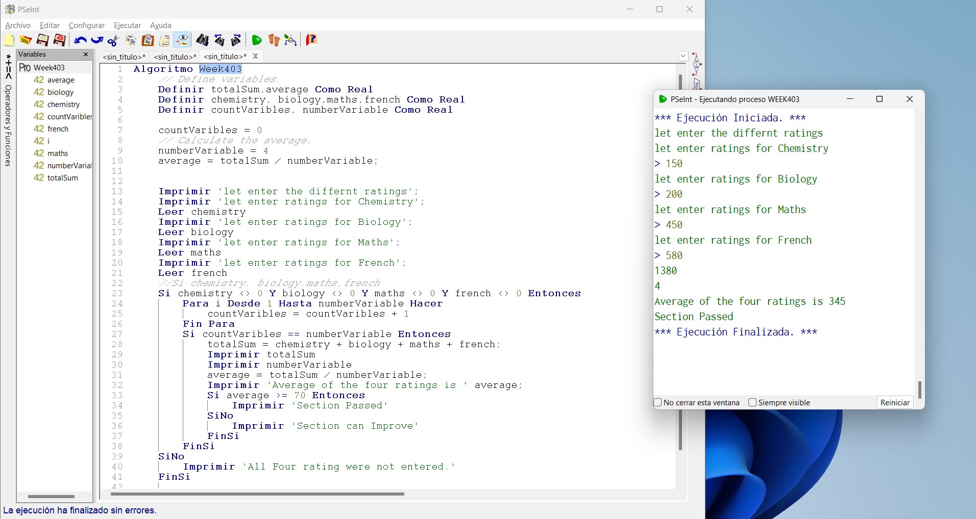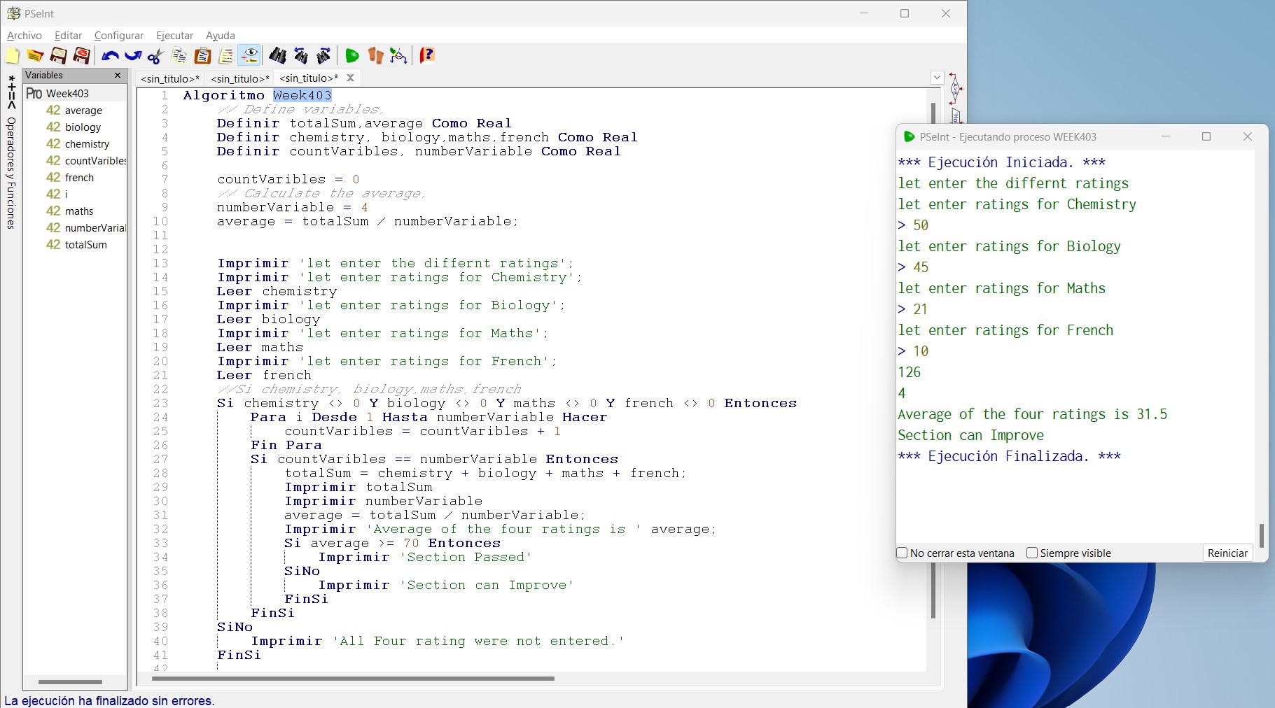 Here we have a small program to handle an average of four subjects. Let's start by always defining all necessary values, which I will be making use of. What is the formula to handle the average?