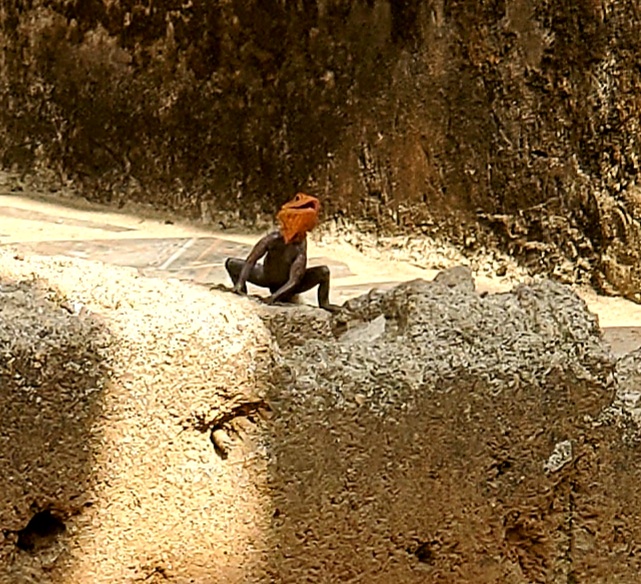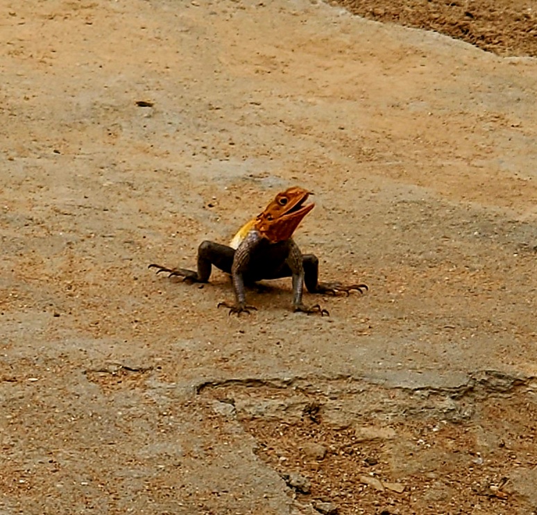 As I was there, a male lizard ran to my front and opened its mouth. I was wondering what it was up to. It kept opening its mouth as though it swallowed that wasn't okay with its system.