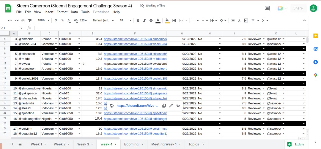 Just Like the previous week, Steem Cameroon created a google sheet to follow up and track all entries for this week.