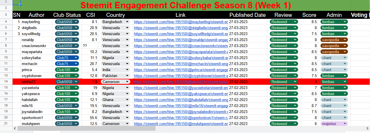 Steem Cameroon created a google sheet to follow up and track all entries for this week.