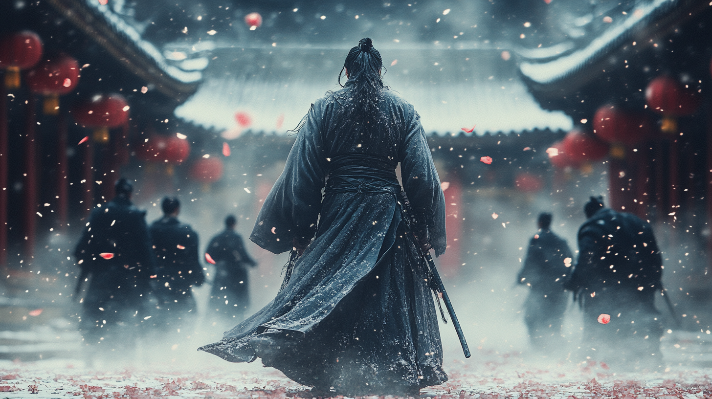 青山如黛,暮色渐沉。一座破旧的茶馆里,老掌柜正慢悠悠地擦拭着茶具,忽听门帘响动,进来一位身着灰袍的中年剑客。