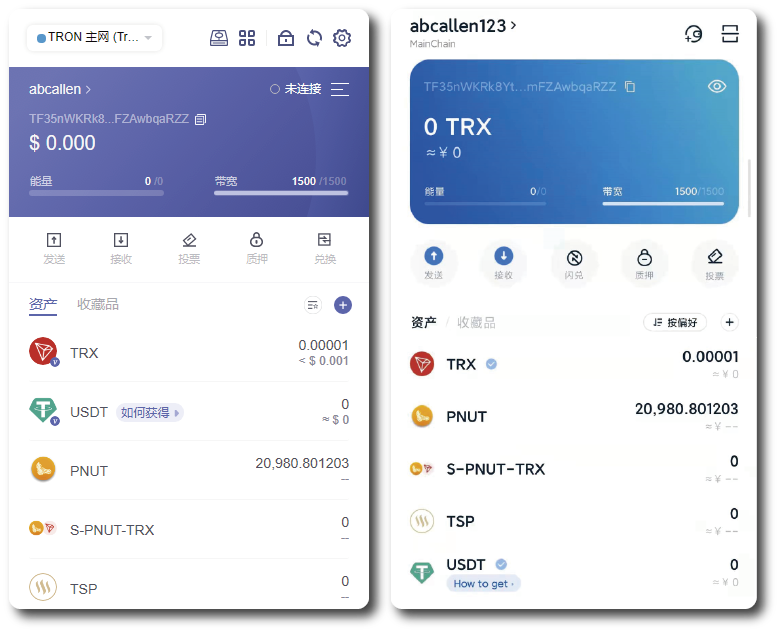 波场钱包分为电脑浏览器插件Tron link以及波宝Pro两种,不过目前PNUT在波宝Pro以及Tron link上都无显示当下资产总价值,举个例子