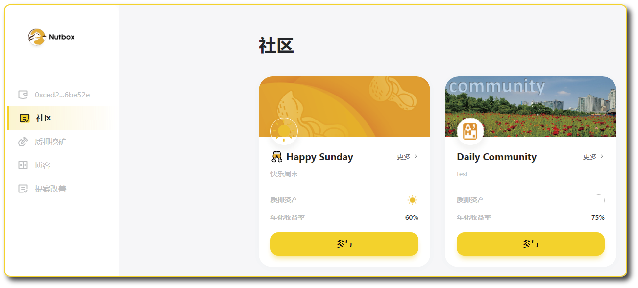 最后我们回到社区模块,我们便可以看到自身所创建的去中心化质押社区