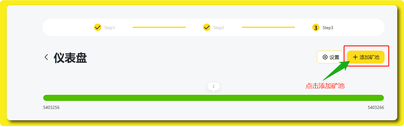 接下来我们会进入「仪表盘」,我们需要在仪表盘内为社区添加矿池,我们直接点击「+添加矿池」。