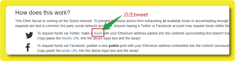点击ETH水龙头网站底部的tweet