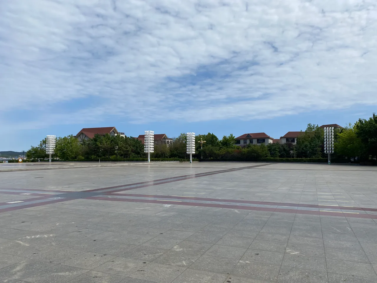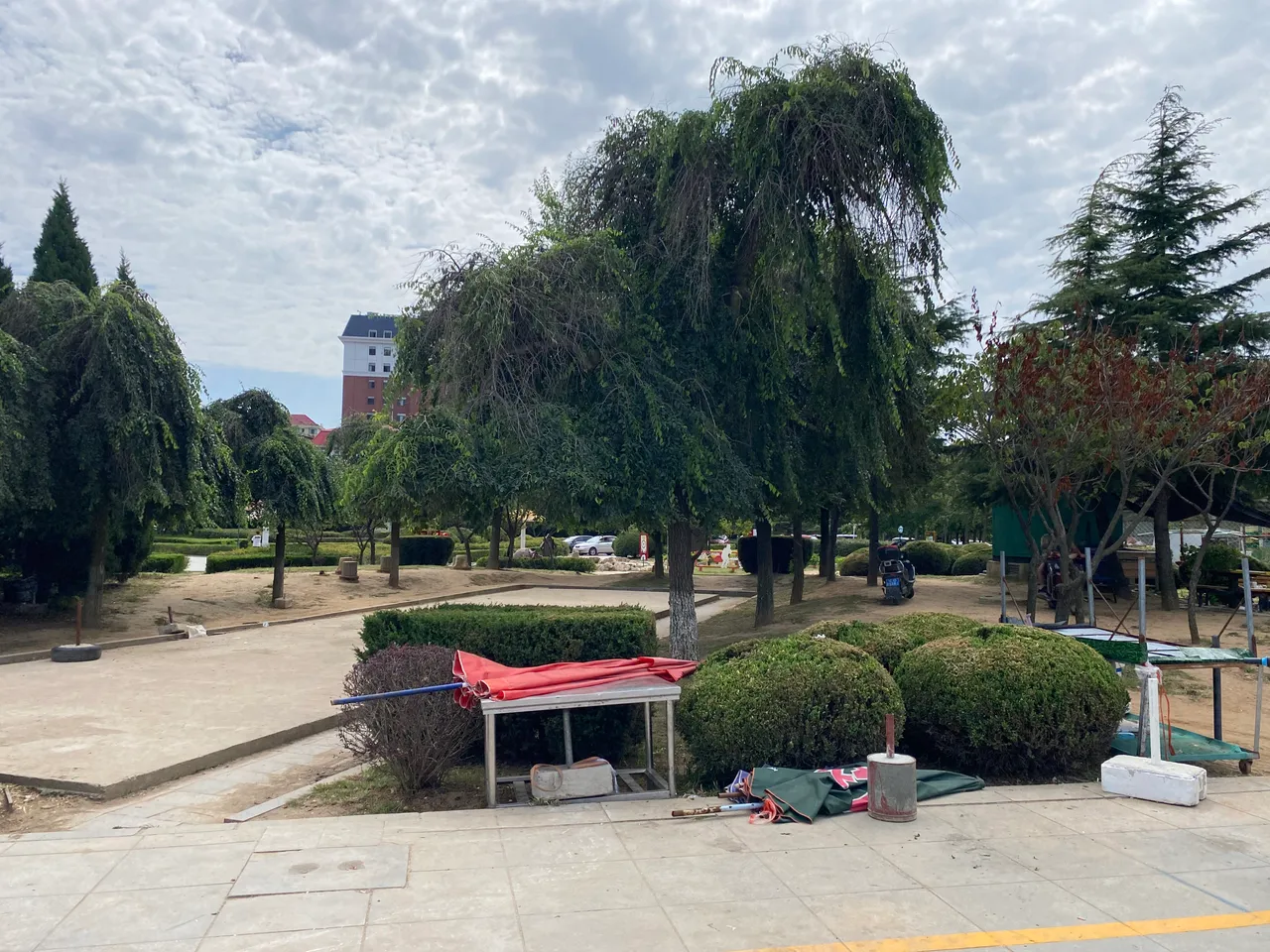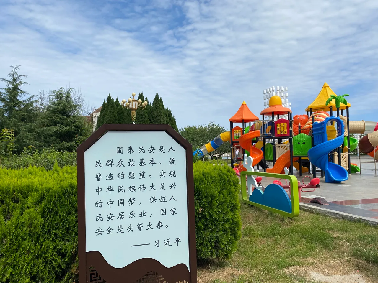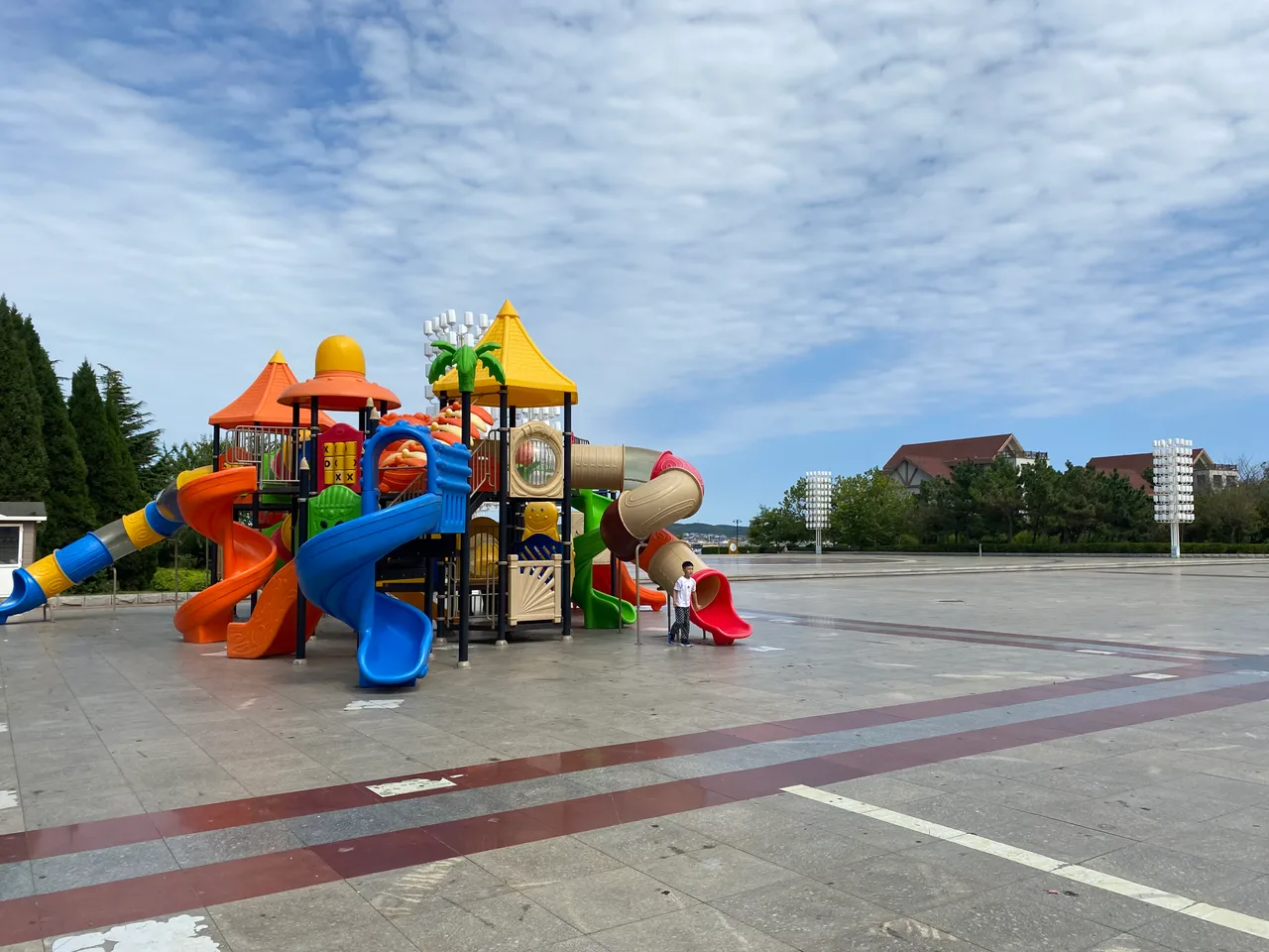 公园里有个大型广场,应该是岛上最大的广场了。远处就能看到孩子们爱玩的一个城堡,孩子们可以上下奔跑玩耍。还有秋千,以及一些其他的健身器材。中午阳光暴晒,并没有几个人行走,广场上很空荡。我穿着防晒服沿着四块石公园走,真的是好晒啊,而且温度还很高,秋老虎还是很厉害滴!