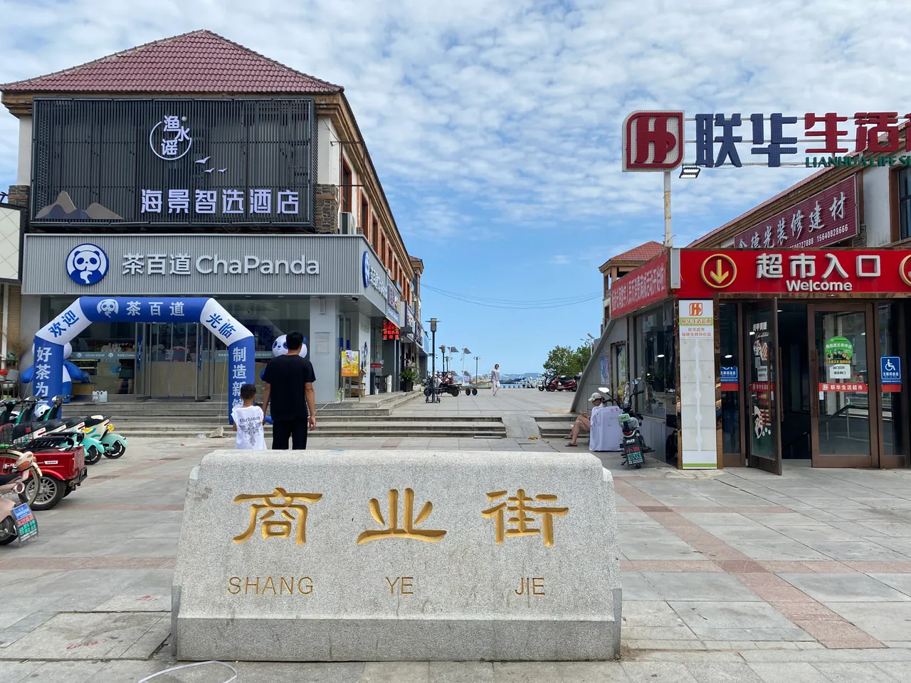 没想到这次住的酒店对面就是四块石湾公园,公园的前面就是县城的繁华商业步行街,其实步行街并不是很长,也就百米左右。这个地方应该是岛上最繁华的地方了,而且又是交通枢纽,附近就有通往各地的公交车,所以住在这里还是非常方便的。