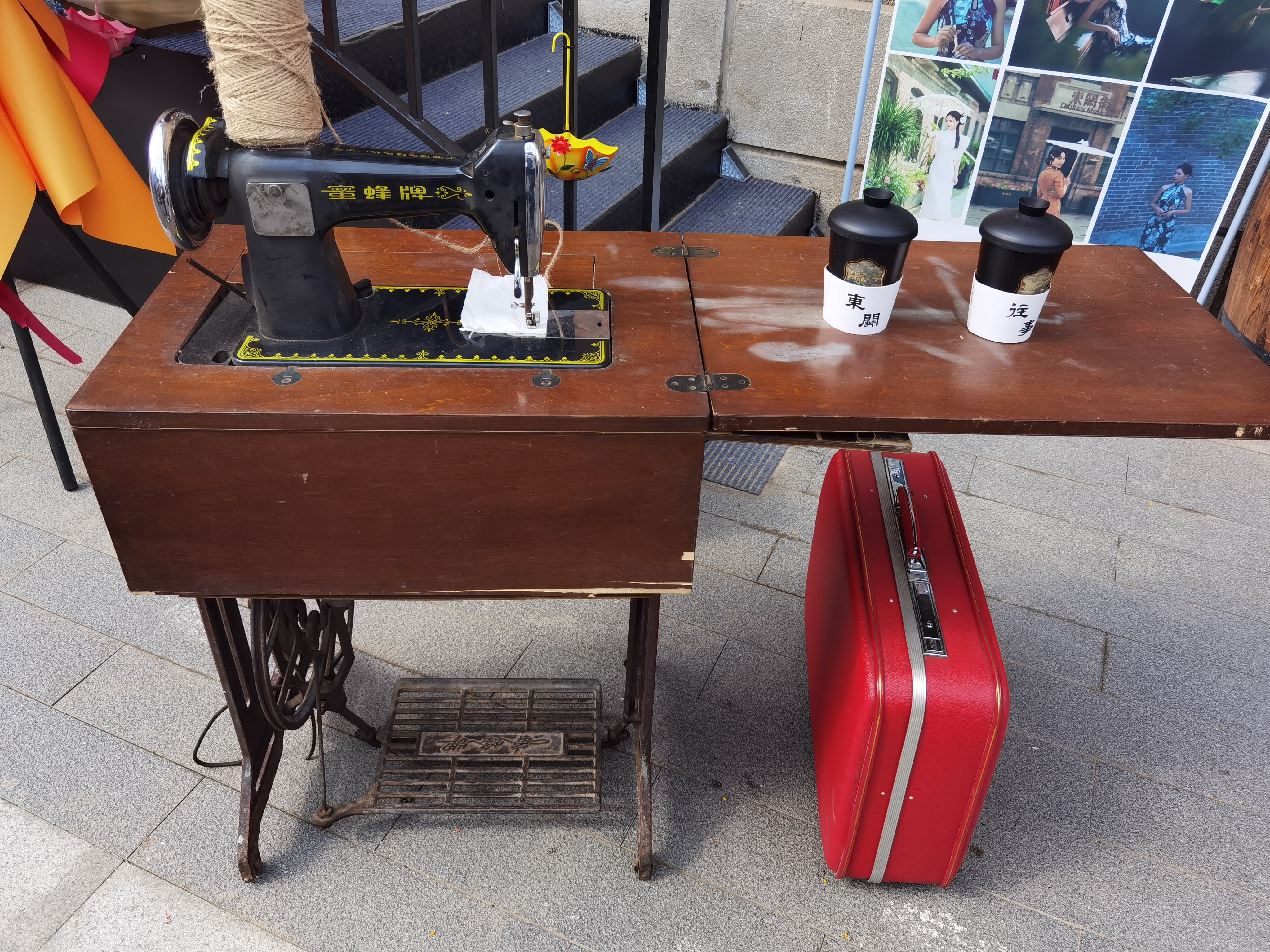 而我今天又走在这条街上的时候,也是人流不断,人们从四面八方涌向了这里,就是为了看看这条古街的变化。虽然二期,三期还正在施工中,但是一期的反响已经非常好了!在那个咖啡飘香的店里,店里店外都有着上个世纪的美好回忆。这里有最初古老的电话机,俗称电匣子的收音机,打字机,唱片,留声机等等,外面还有缝纫机,木桶,黄包车,简直是个收藏店呀!