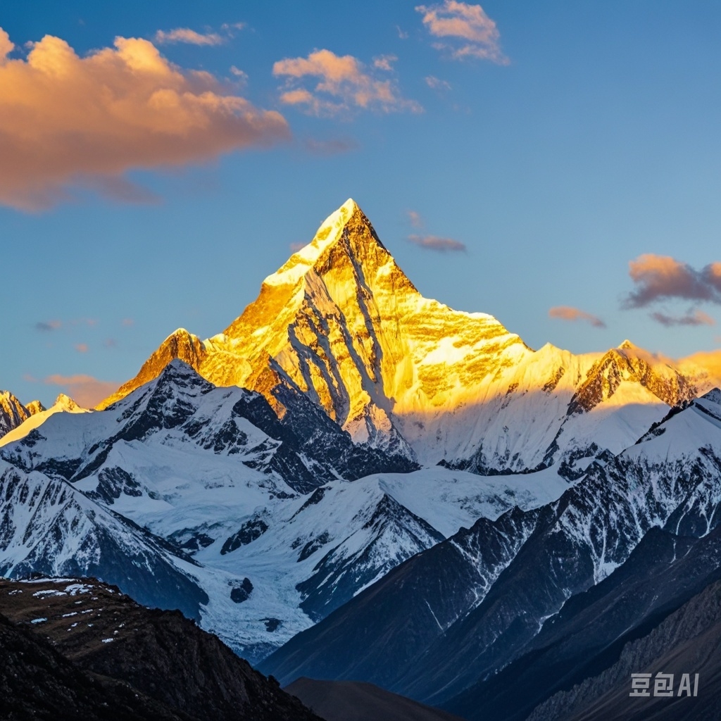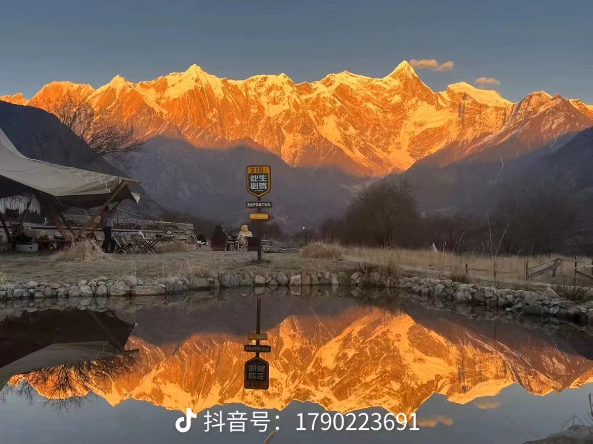 That golden light not only illuminates the snow-capped mountains but also illuminates people's hearts. Standing on this vast land and looking up at the magnificence of the sunlight shining on the golden mountains, you will feel the greatness of nature and the smallness of human beings. Under the reflection of the golden sunlight, the snow-capped mountains appear even more solemn and majestic, as if telling ancient stories and legends.