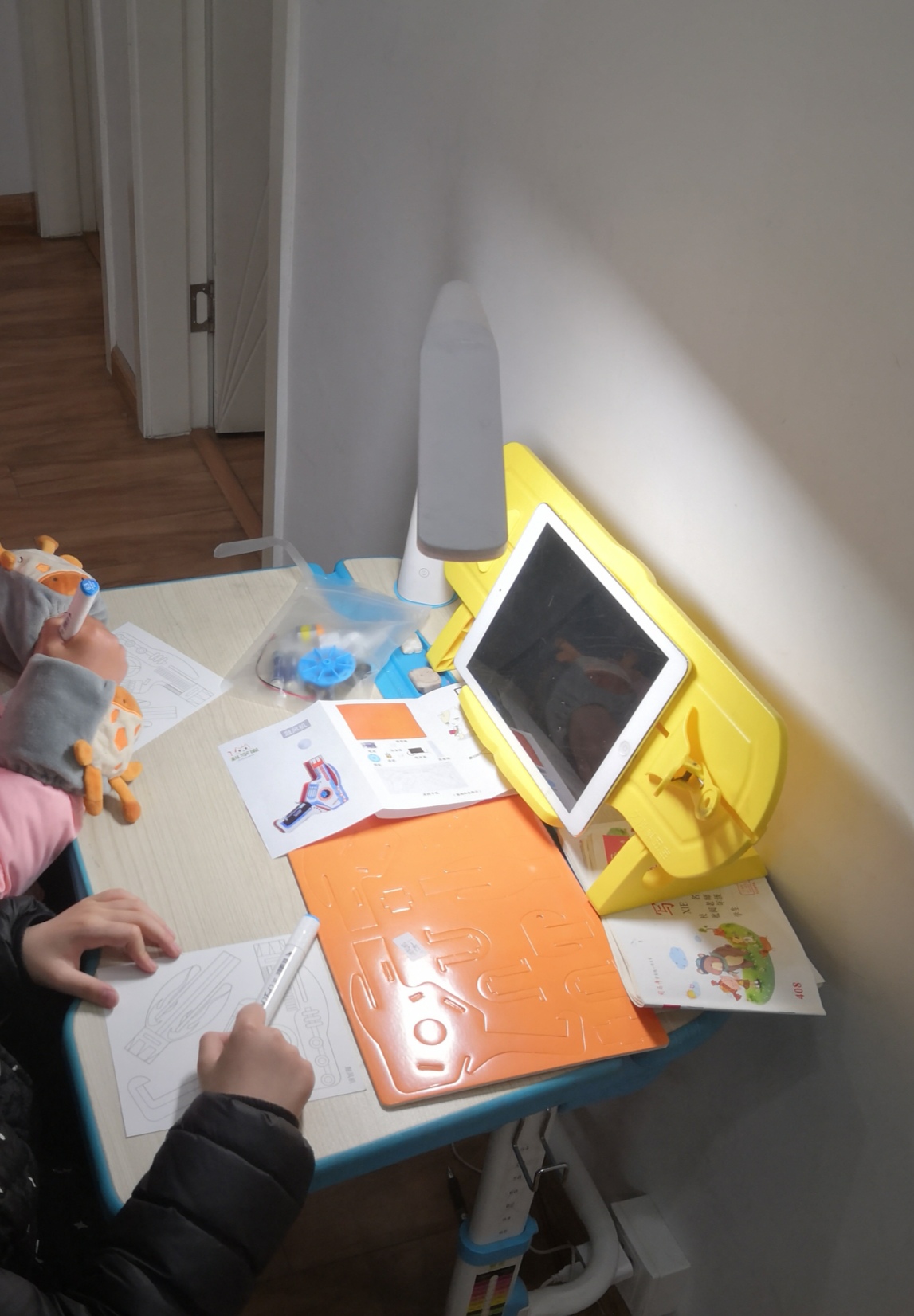 小宝贝的表姐又到家里来玩了,点名要一起做手工,正好买了好久的科学喵套件里面还剩两个项目,就拿了一套鼓风机的套件出来,让她们一起做。