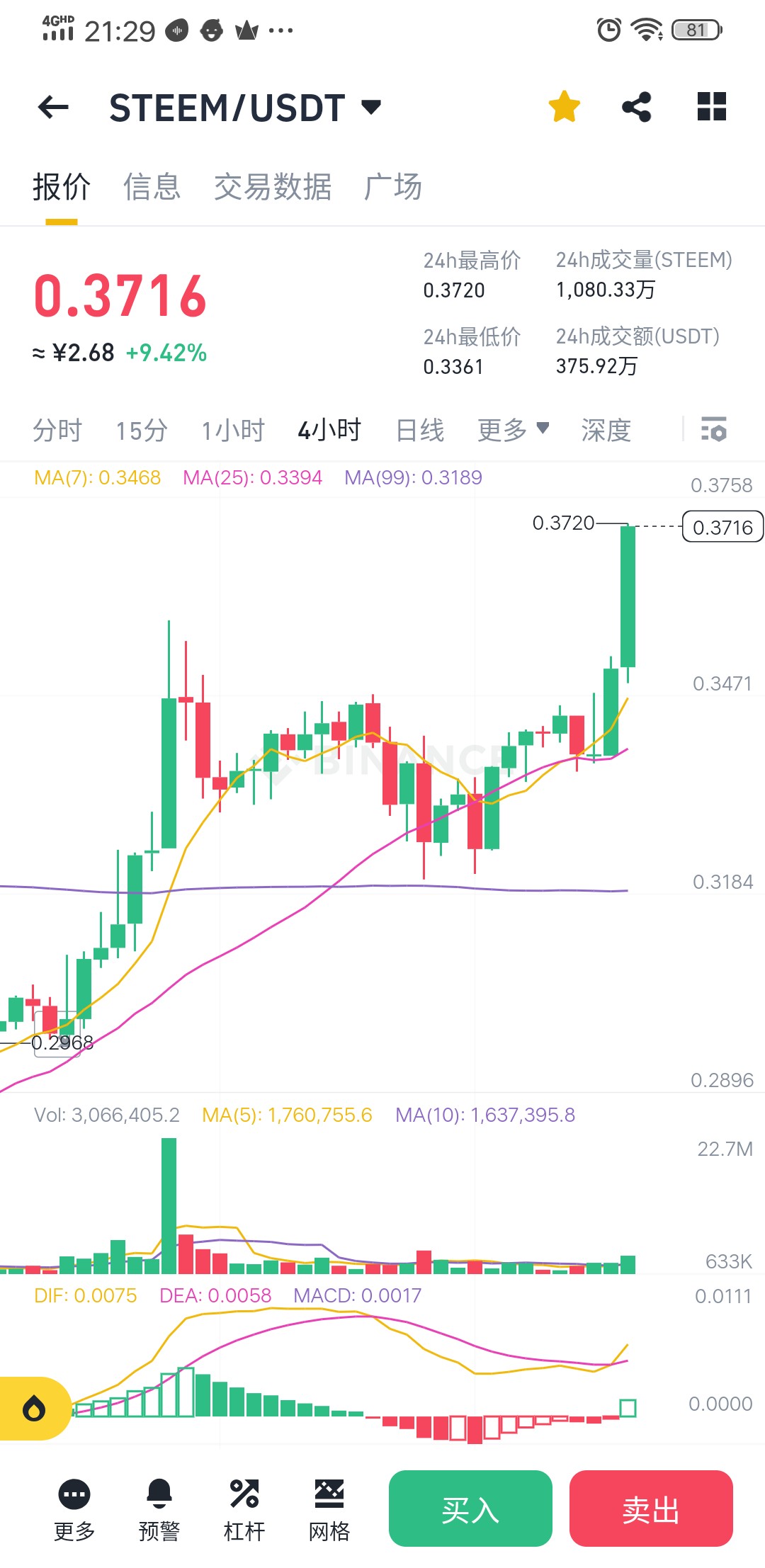 卖飞啦!哈dengyanping (71)in STEEM CN/中文 • 2 years ago 就几十个steem,眼看着卖飞啦!哈哈哈,这感觉真是不好受,本以为2.64rmb就很高了,结果刚挂单一会儿就跌到了2.63,想想挂到2.64吧,结果挂完2.64的功夫,人家直接涨到了2.68🙈🙈,真气人啊! #whalepower #ocd-resteem #steem-guides #lifestyle #food #creativecoin #zzan #dblog #diamondtoken #marlians #upfundme #actnearn