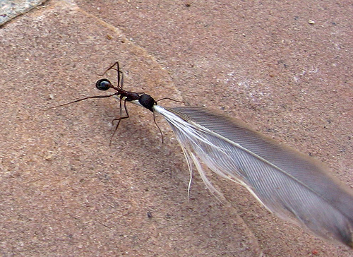 一天早上,我浪费了将近一个小时,看着一只小蚂蚁拿着一根大羽毛穿过我的后露台。很多时候,它在前进的道路上绝对会遇到障碍,当短暂的停顿时,它会造成强制性的绕道。有一个目的,蚂蚁不得不以物易物交换混凝土内约 10 毫米宽的裂缝。当短暂的沉思时,蚂蚁把羽毛放在裂缝上,走过它,拿起对面的羽毛,然后继续前进。