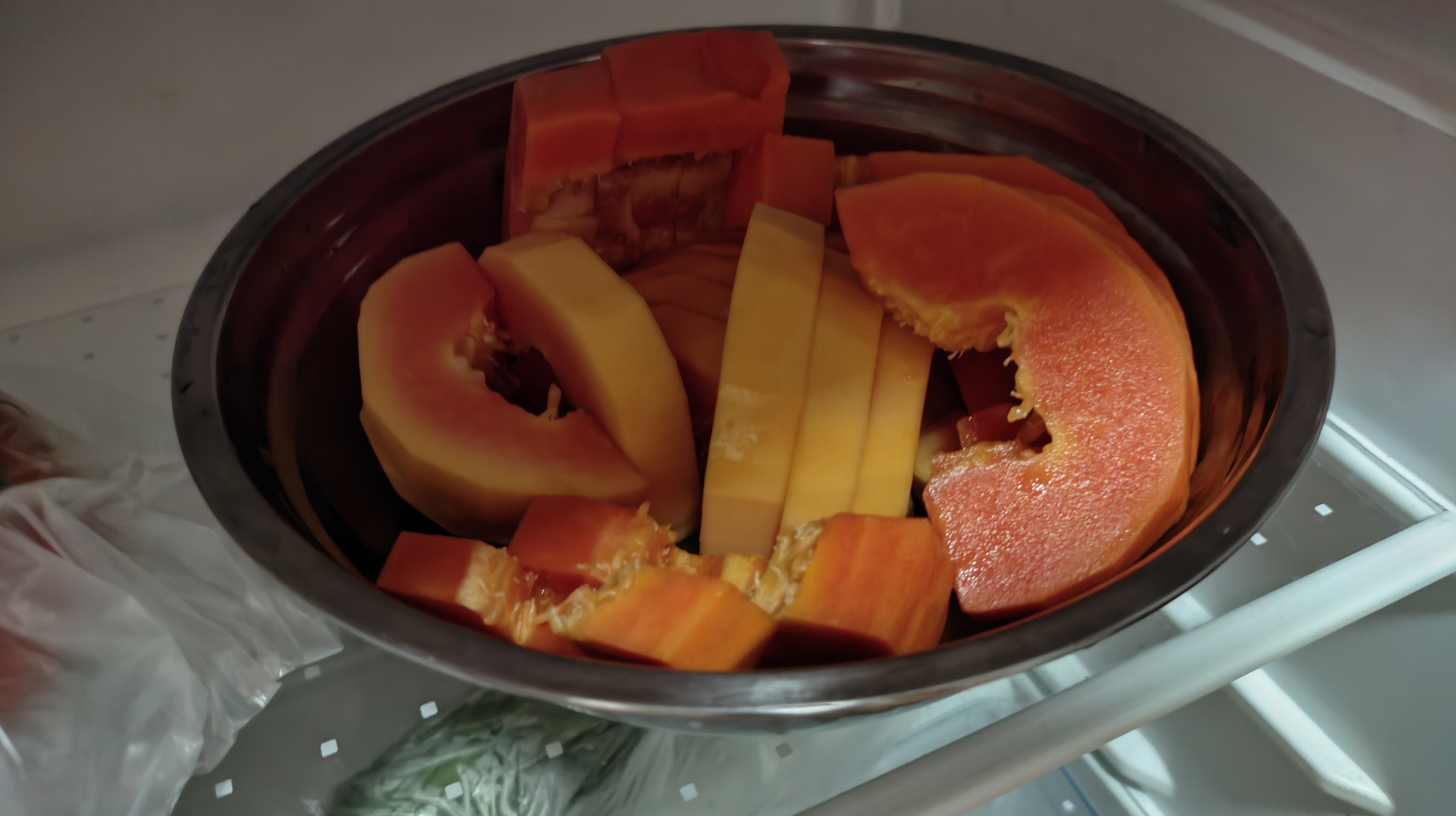 金灿灿的木瓜hmayak (65)in STEEM CN/中文 • 8 hours ago 今天晚上去散步回来路过超市,便进去看看有什么好货尾货。在蔬果区徘徊了好久,看到了好多水果都好想吃,无奈钱包羞涩,不容许all in啊!既然有着选择困难症,只要什么都不选就好啦!想通了就走开,突然间理货员叫住我,让我过去看看特价蔬菜。盛情难却,就去看看。绿叶蔬菜有点蔫了吧唧的,玉米很好但是不是很想吃。在两个木瓜之间看了好久,理货员瞬间看出来我的难题,说道:“5毛一个,要吗?”都打这么低的折扣了,赶紧拿下这两个。感谢理货员大叔。 #cn #fruit #krsuccess #life