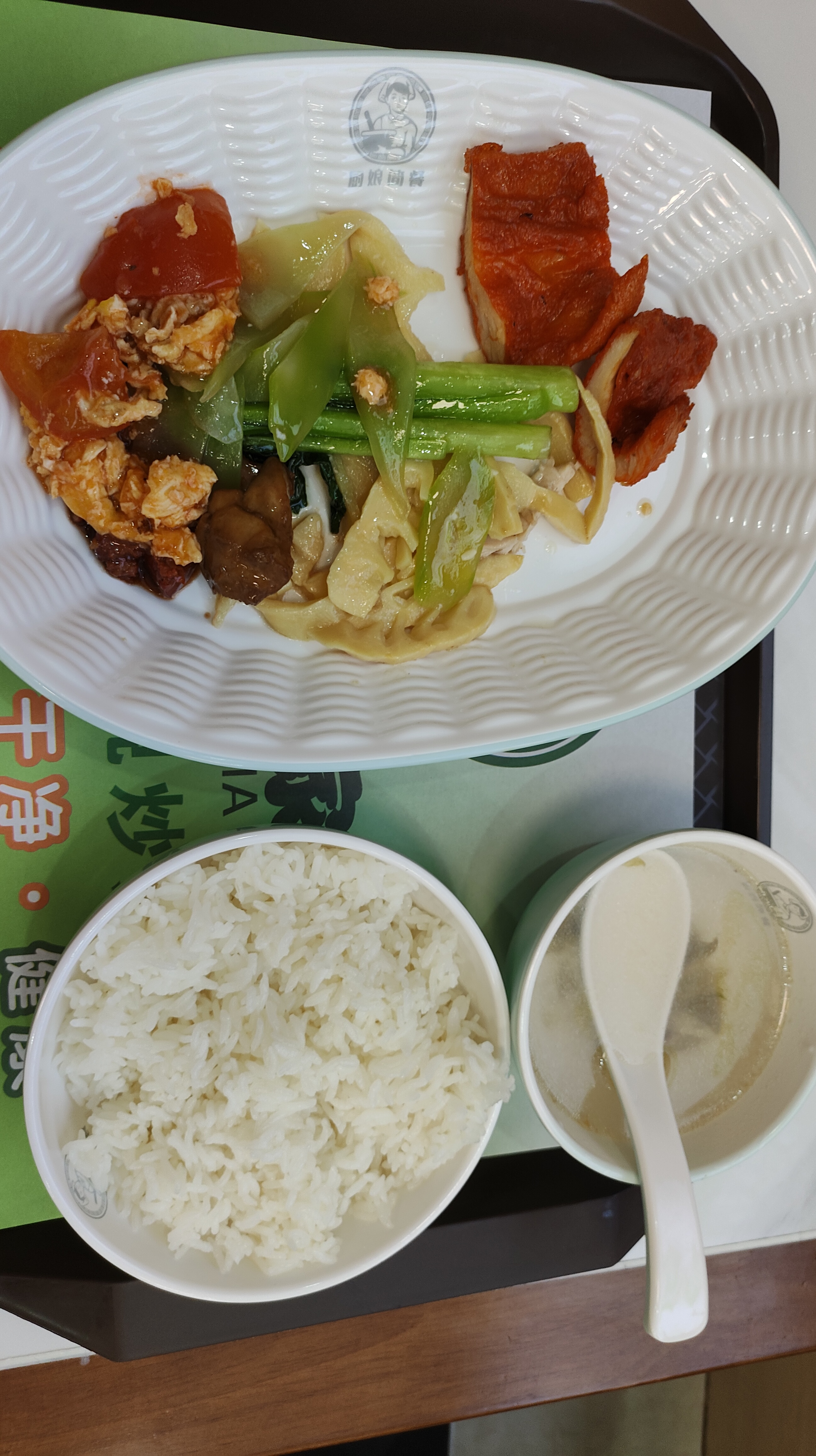今天的晚饭hmayak (65)in STEEM CN/中文 • last month 今天想吃油炸鸡排但是食堂没有啊!走到最后面才发现有奥尔良鸡排,赶紧拿了两块。又回头挑了点鲜笋和莴笋。西红柿鸡蛋也很丰盛,盛了一点,很下饭! Posted using SteemX #cn #krsuccess #cn-curation #cn-reader