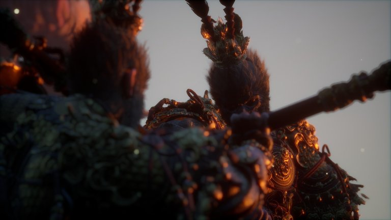这一关由于有筋斗云,便不需要像之前的关卡一样按着主线推地图,也没有纷繁复杂的隐藏剧情。偌大的花果山也就只有几个妖王和头目,有的怪物是击败之后获得奖励,有的是得到大圣套装,就包括锁子黄金甲、藕丝步云履、凤翅紫金冠、翠飞龙钗。