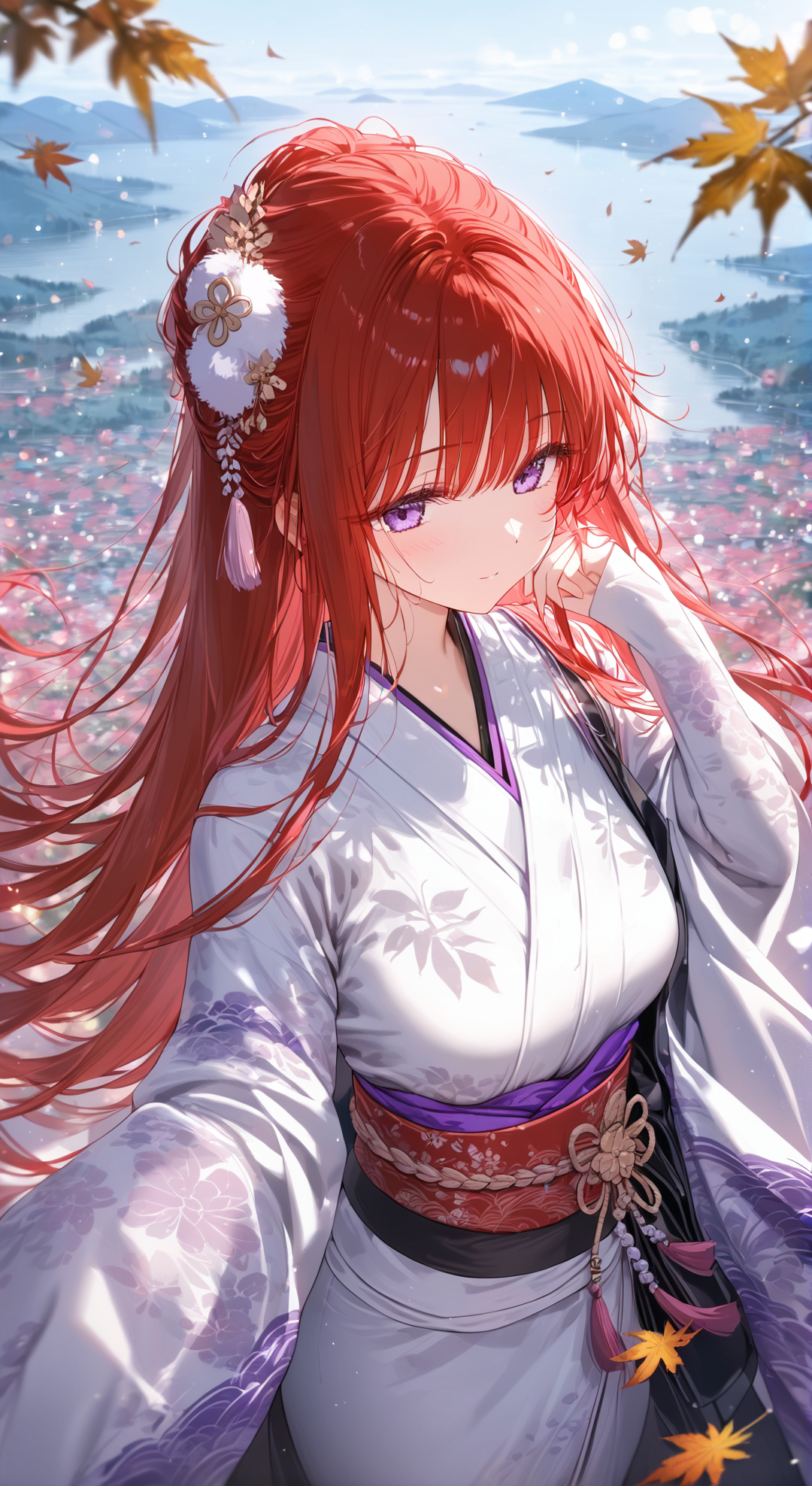 秋日红叶,少女心ykk (28)in STEEM CN/中文 • 2 years ago 远山青黛隐,湖畔花正香。 红发随风舞,秋叶漫天扬。 湖水映山影,和服映夕阳。 秋日多情意,红叶寄思量。 紫眸藏心事,淡淡染忧伤。 一声轻叹息,秋风自微凉。 少女心如水,随波逐流淌。 宁静似画卷,诉说千古长。 今天给大家带来的是一手诗,如果喜欢的话,请点个支持 #cn #art #painting #aiimage #poem
