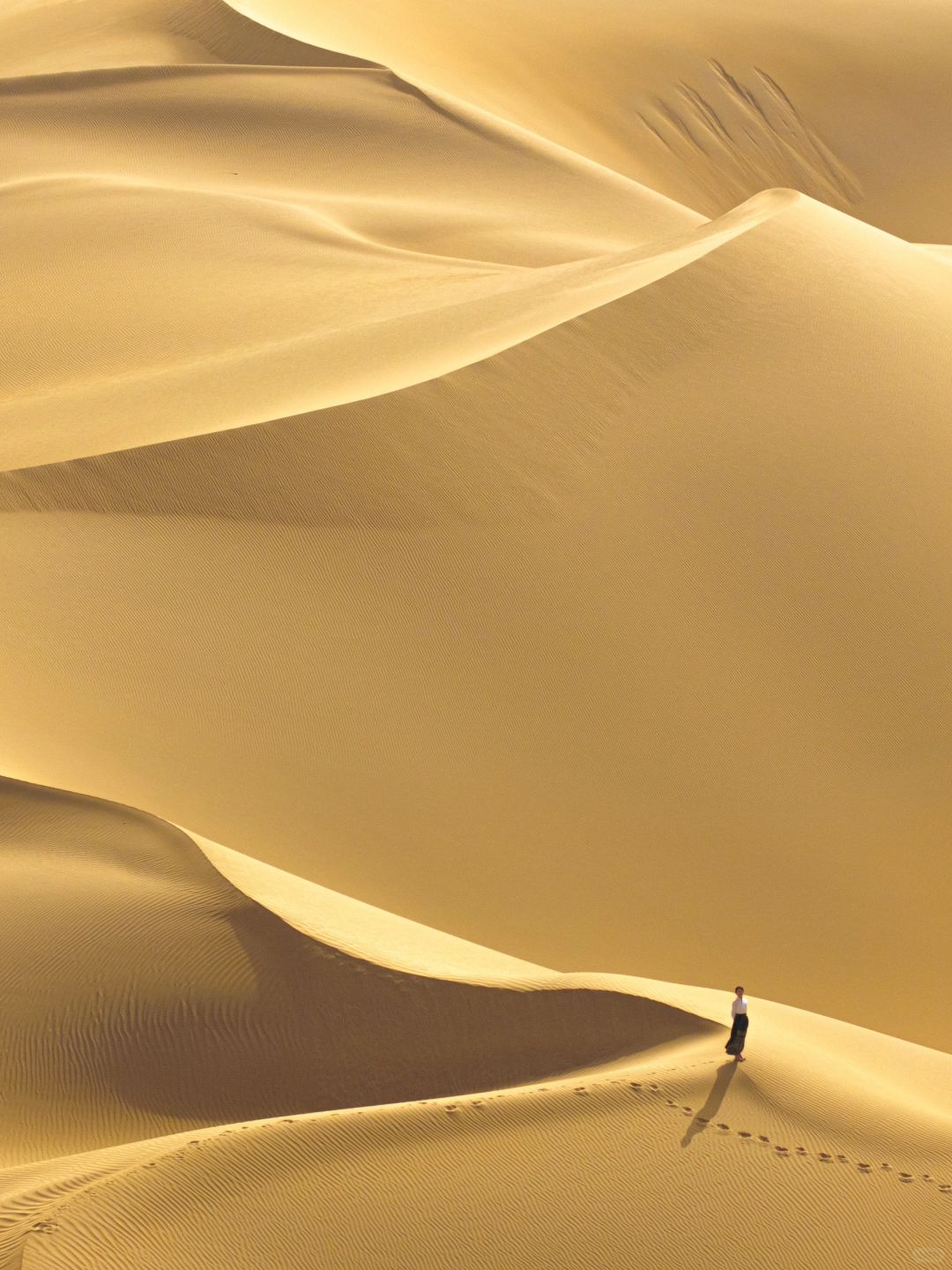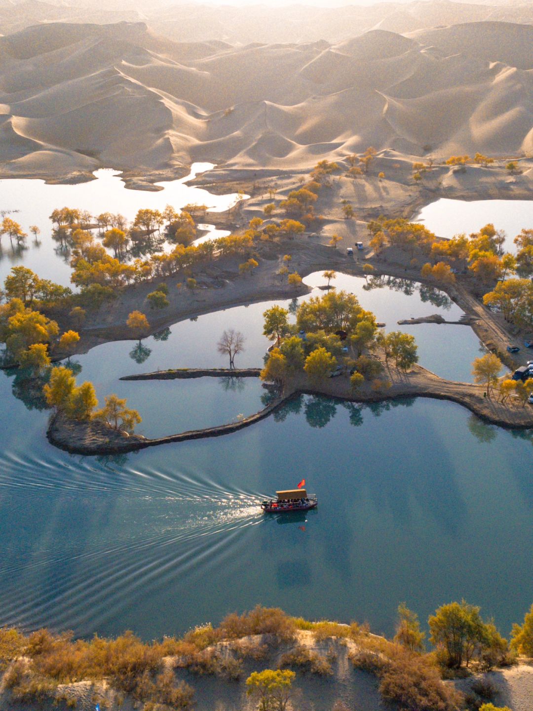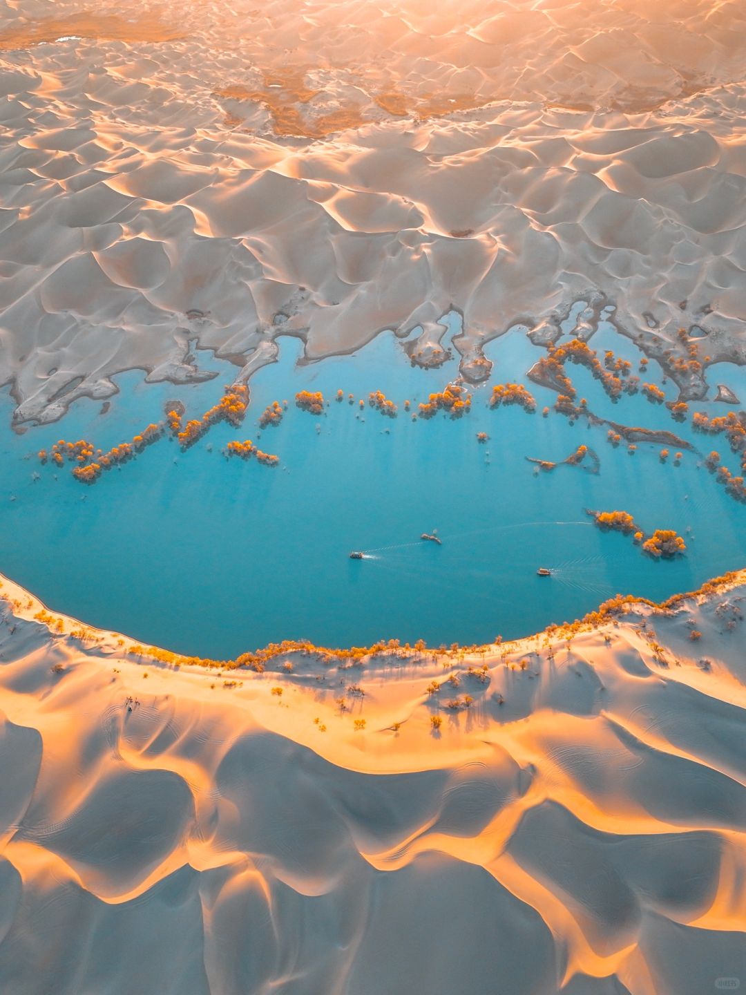 与其他胡杨林不同的是这里背后就是广袤的塔克拉玛干沙漠,有很高的沙山,沙漠纹理也非常艺术🎨,与水上胡杨相得益彰,最重要的是这里人少