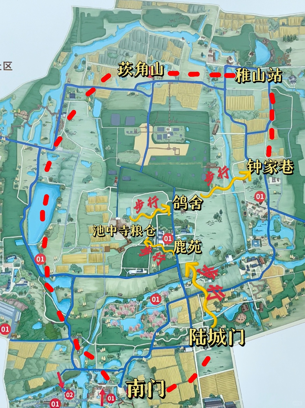 南门至“鹿城门”站下车,步行前往鹿苑