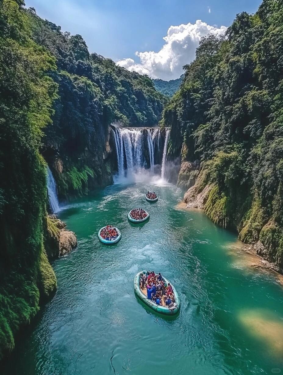 3、前往德天瀑布,乘一叶竹筏邂逅瀑布的壮美,再去通灵大峡谷,在峡谷中感受原始的自然气息。在陇卡赖结束旅程后返程。