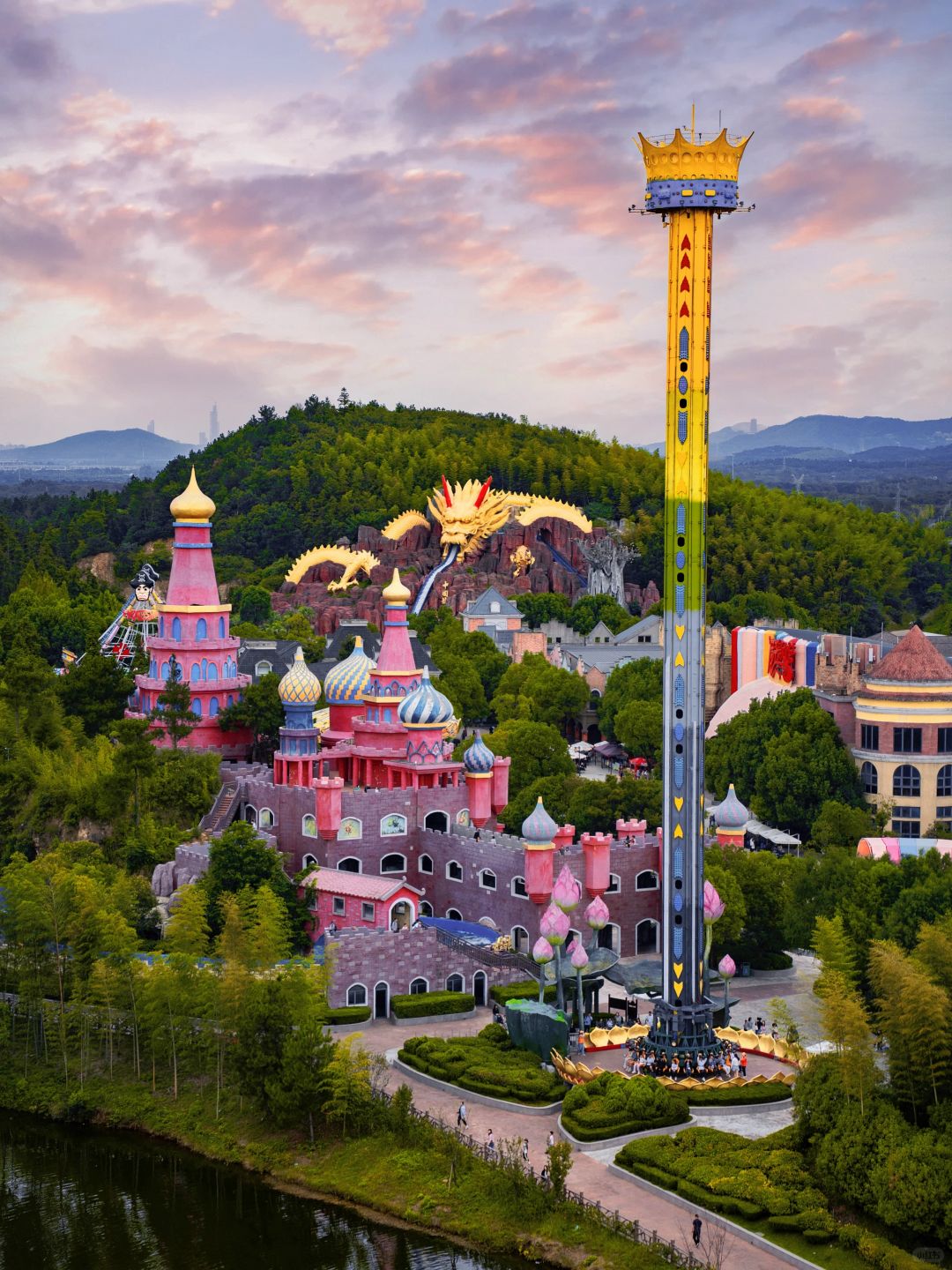 有很多适合大小朋友的大型游乐项目,登上城堡可看到游乐园全景~结束后可去萌宠园看看~
