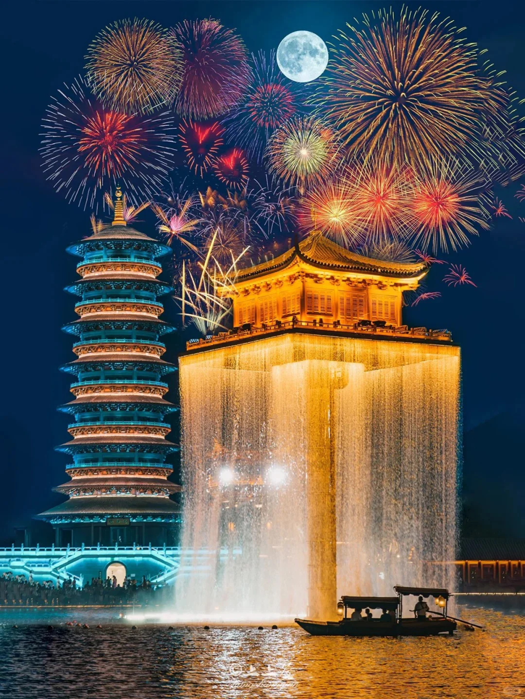 婺女洲夜景真的绝,特别是打铁花和烟花秀!