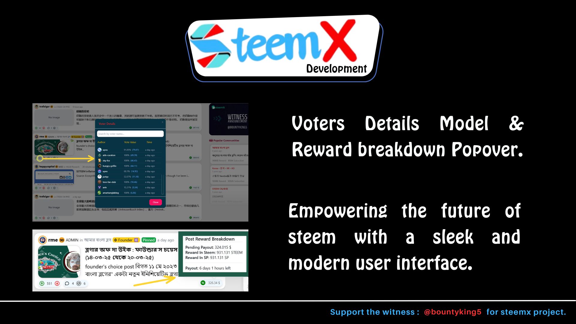 SteemX Development Update -- Voters Details Model & Reward breakdown Popover.