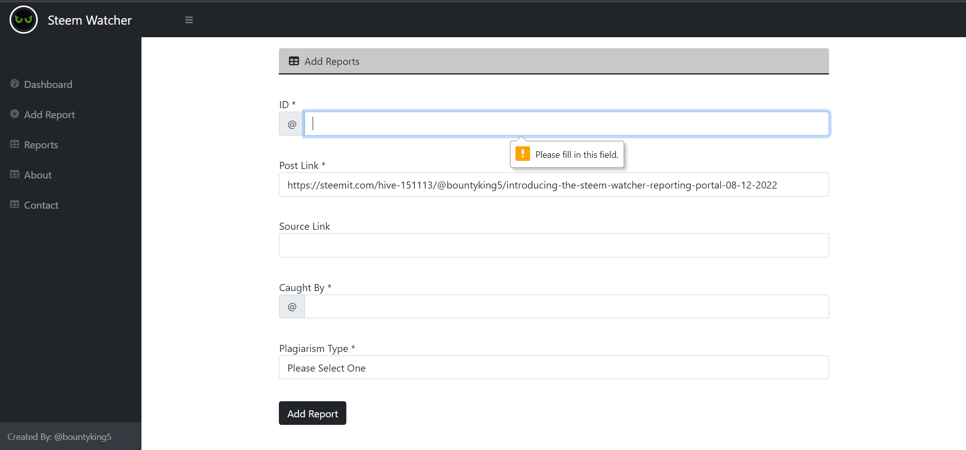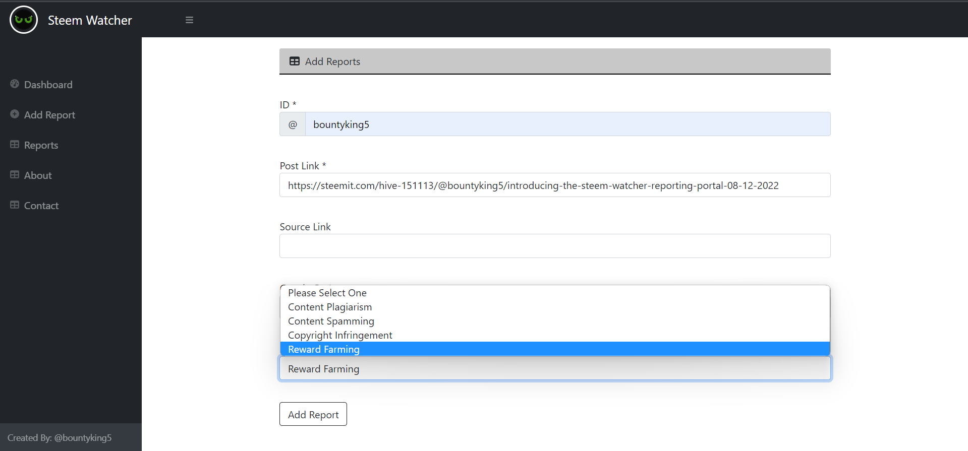 The " STEEM WATCHER " Detectives Reporting Portal -- Development on Add Reports -- 15/12/2022