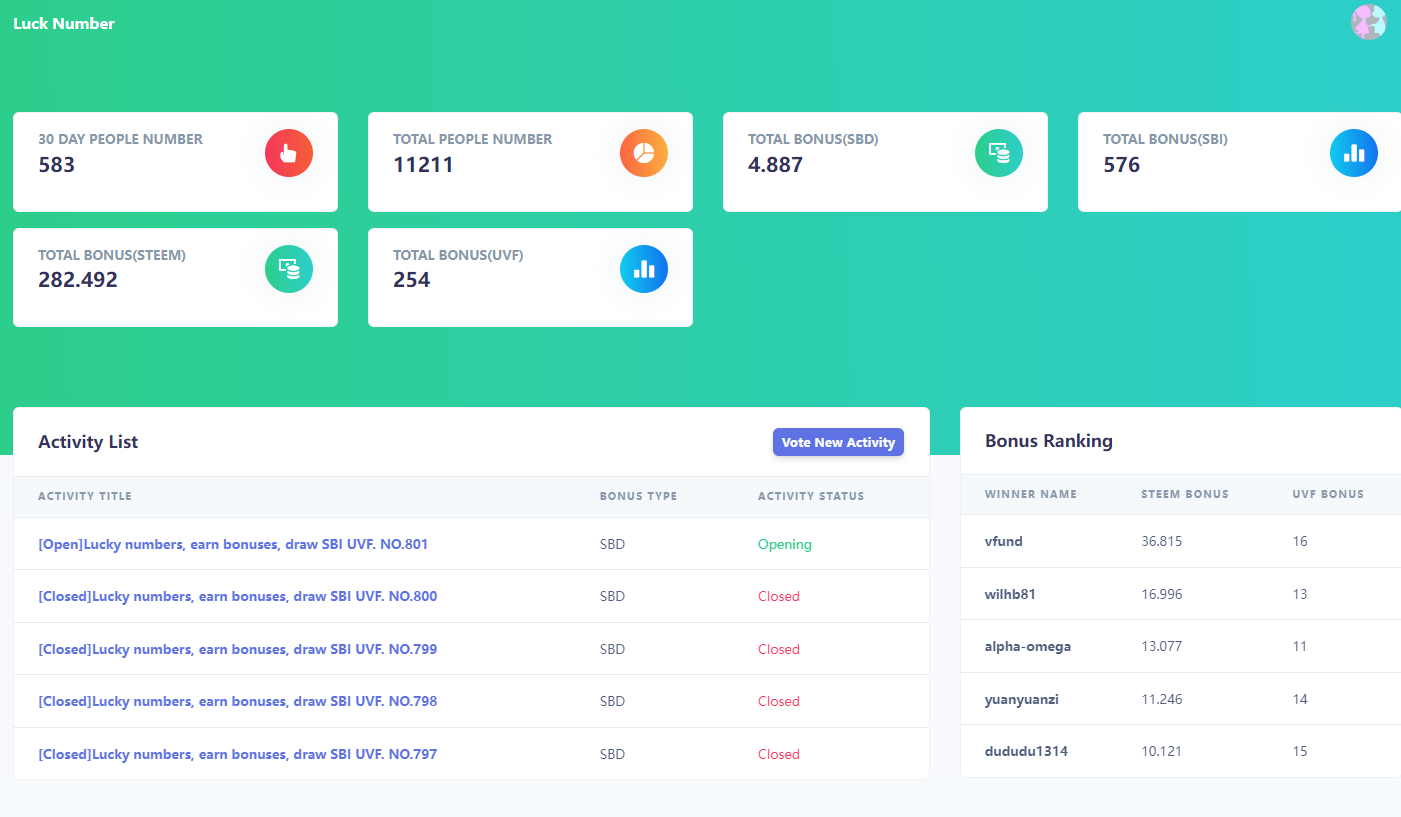 "Lucky Numbers" is a lottery game introduced by the club. Participants acquire lottery tickets through voting and have the chance to win lottery prizes. For this purpose, we have developed a dedicated page for the Lucky Numbers event. Everyone can participate and get a visual understanding of the prize leaderboard and other information related to the Lucky Numbers event.