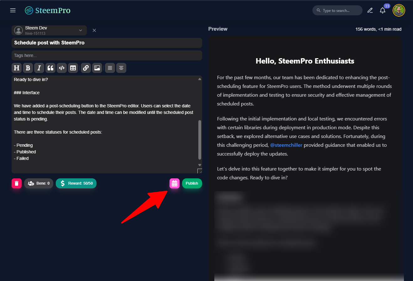 For the past few months, our team has been dedicated to enhancing the post-scheduling feature for SteemPro users. The method underwent multiple rounds of implementation and testing to ensure security and effective management of scheduled posts.