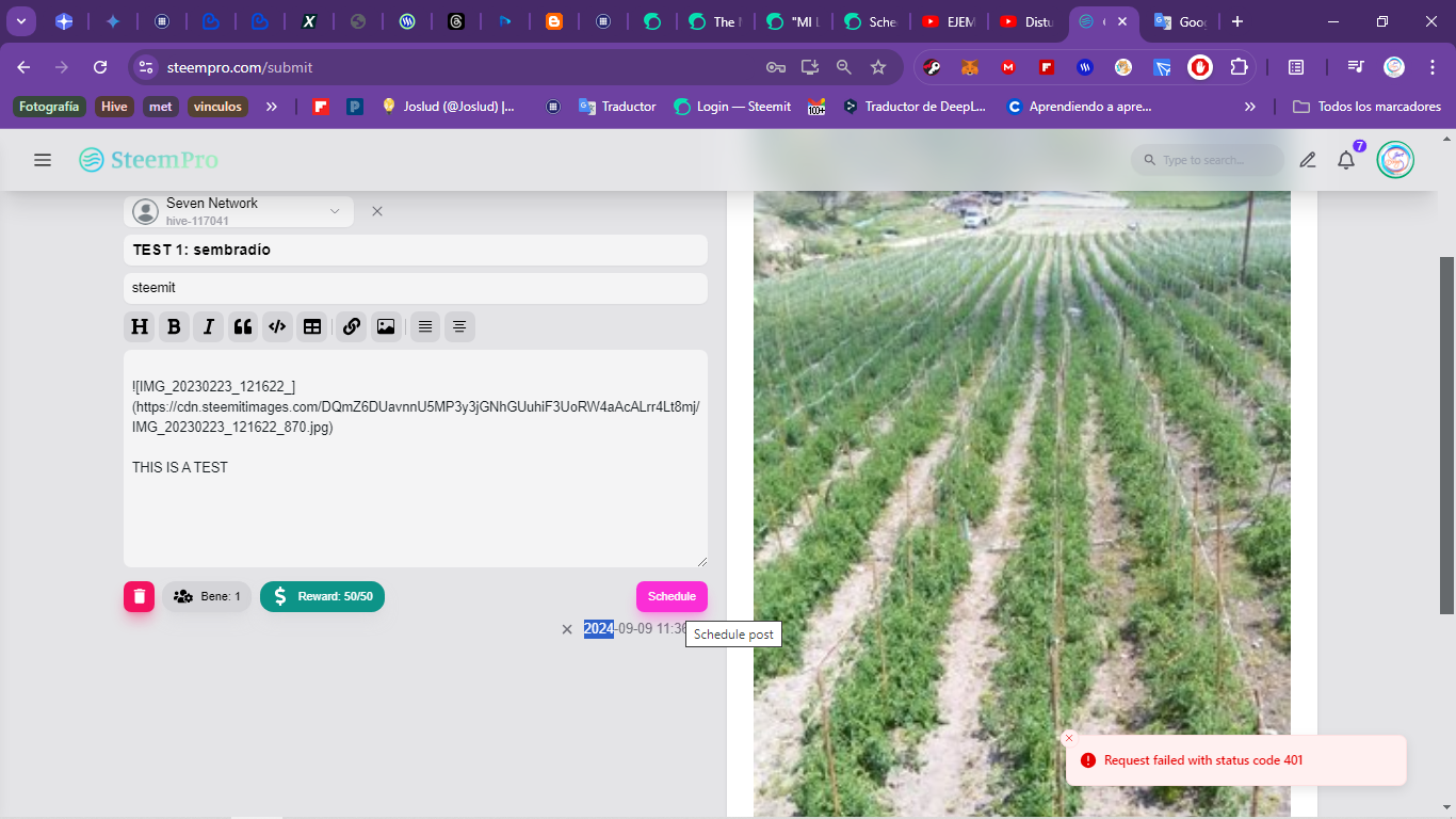 I repeated the process of scheduling the post (TEST1)