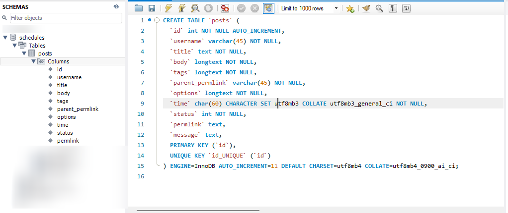 We are using the self hosted MySQL database which save the data of post id, username, title, body, tags, parent_permlink, metadata, options, time, permlink, status, message.