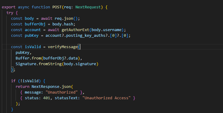 Signing and verifying messages represent the utmost decentralized and robust method to deter unauthorized entry into database write functions. The API autonomously acquires the username of the logged-in user and promptly furnishes the data for retrieving scheduled posts. Login is imperative for users to access data on scheduled posts.