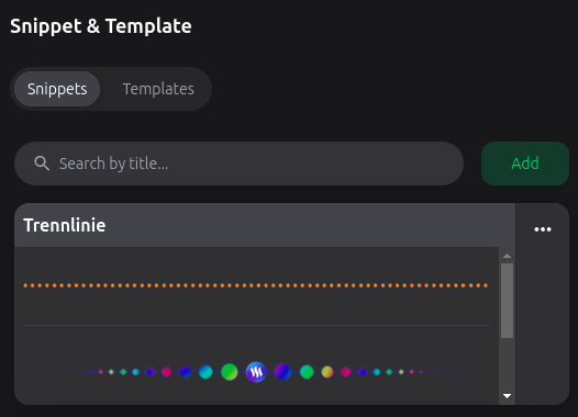 It's great that the snippets are saved online and are therefore available everywhere. The preview is also helpful, everything is really well thought out and easy to use. My compliments!
