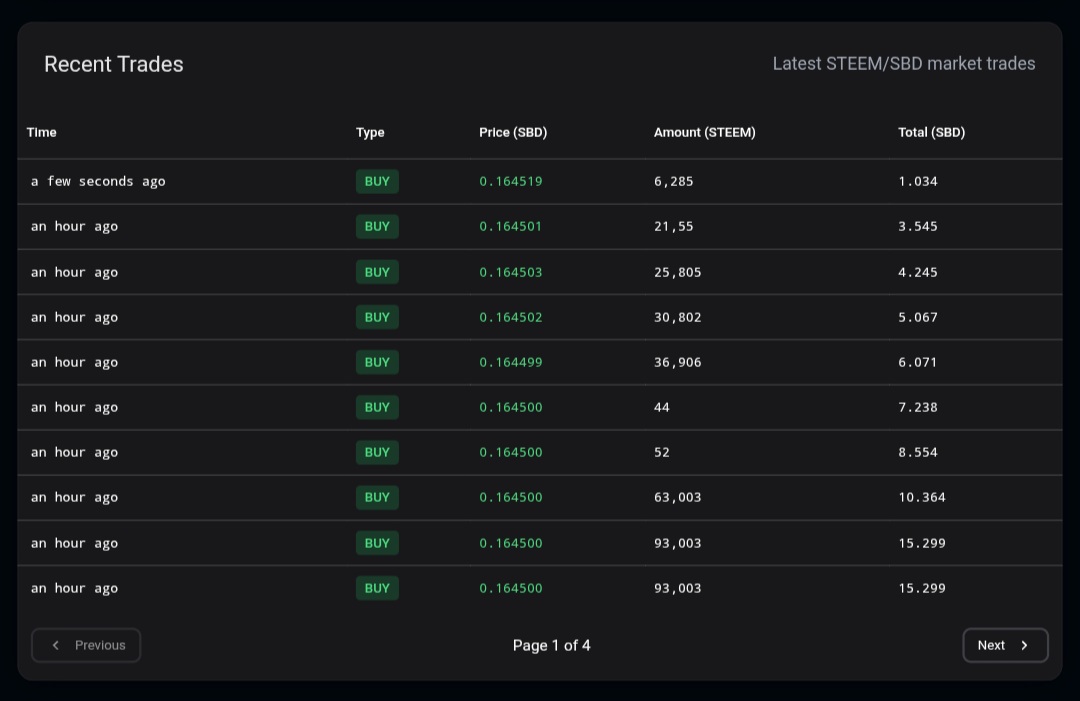 Whether you're a casual trader or an active user, the STEEM Market gives you full control over your trades in a sleek interface designed for speed and simplicity.