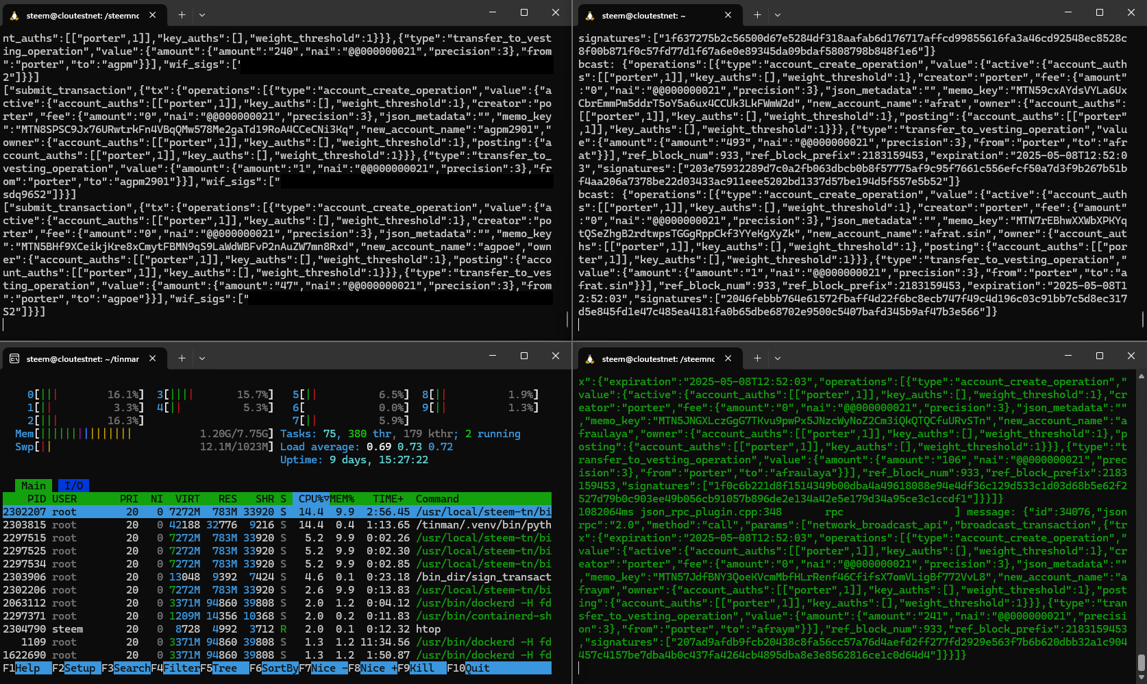 To make the network a little redundant, I have set up a seed (with all necessary witnesses) and a complete RPC node. The seed produces the blocks and the RPC node collects them from it. The RPC node can also be queried with the usual API calls.