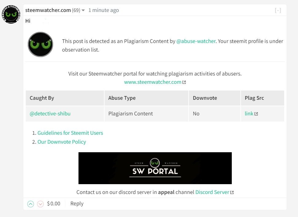 These autogenerated comments typically contain the username, a link to the plagiarized content, the type of plagiarism detected, and the name of the detective involved. The primary aim of this auto commenting system is to curb plagiarism on Steemit, ensuring the platform remains free from abuse and maintains its integrity.