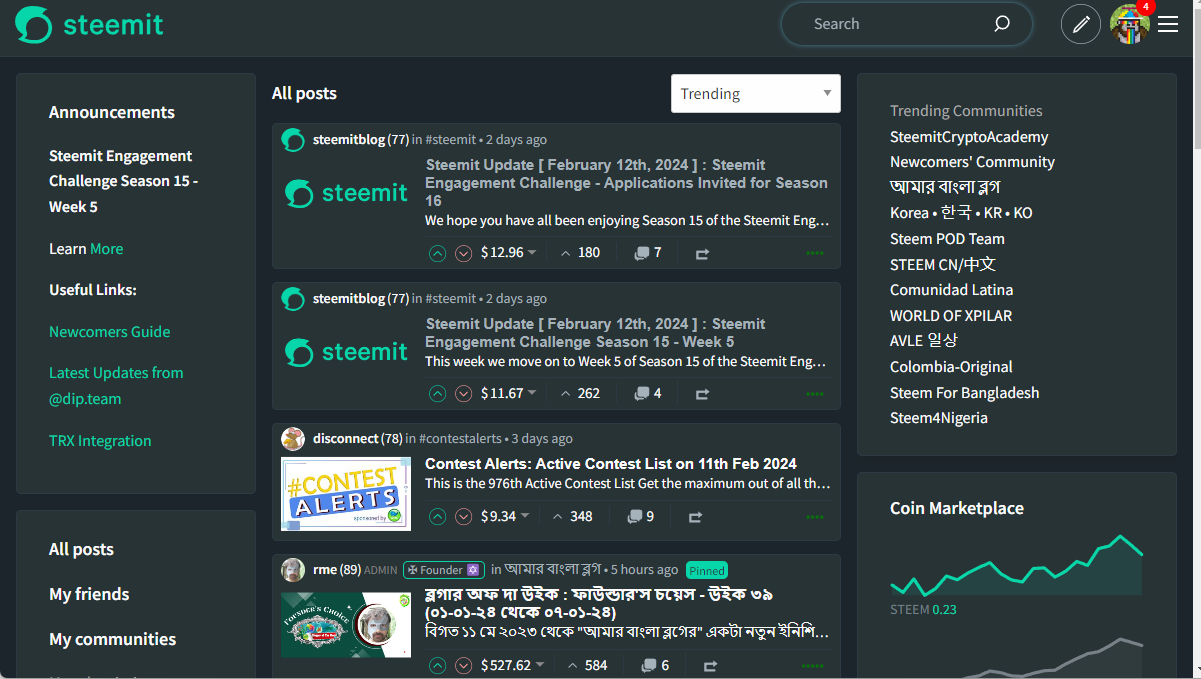 In the Right Menu, we see Trending Communities and I would love to hear in the comments - Who cares?