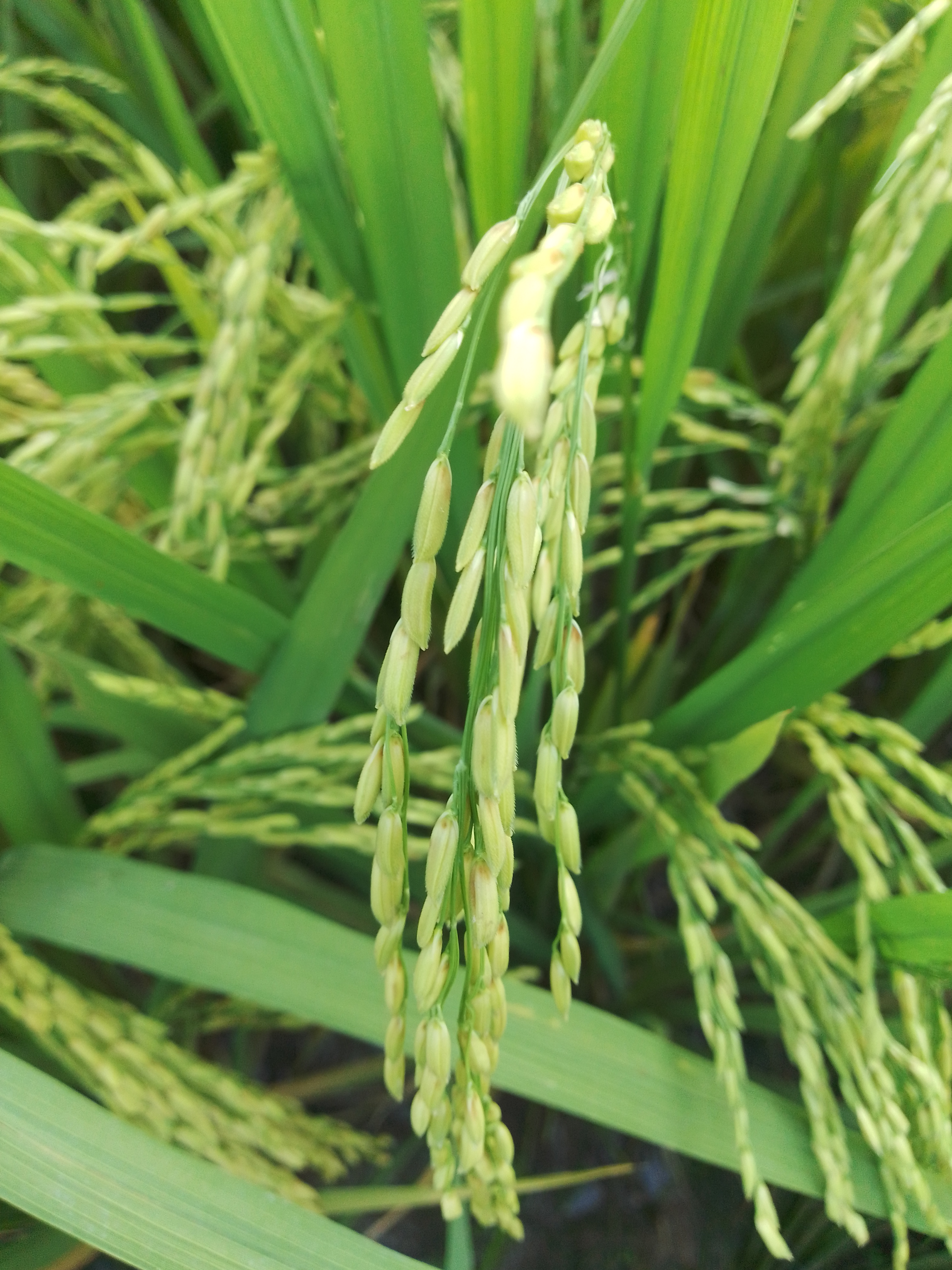 Here is the paddy field you can see. Ours in this paddy field. It was cultivated by my father. So I went there to see if they were attacked by insects. The paddy is much better. No insects attacked. I came to observe the paddy fields. Paddy is very good.