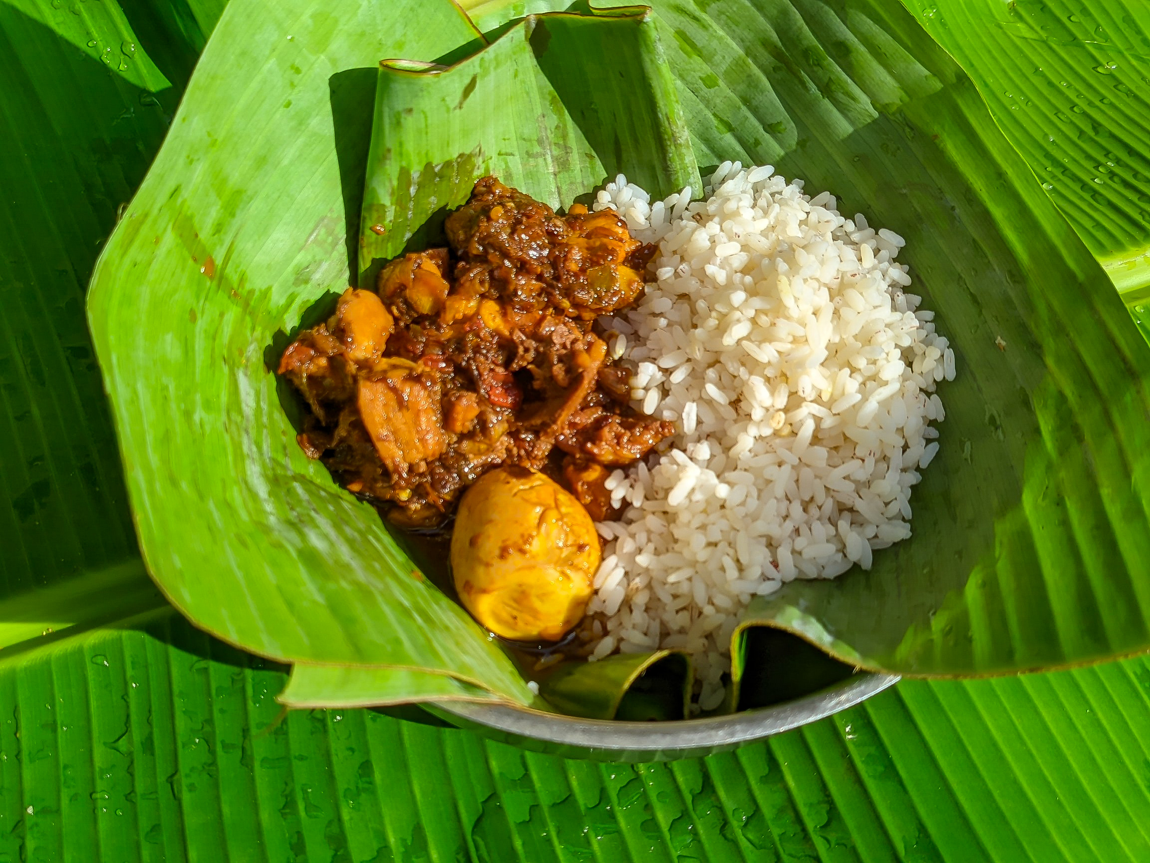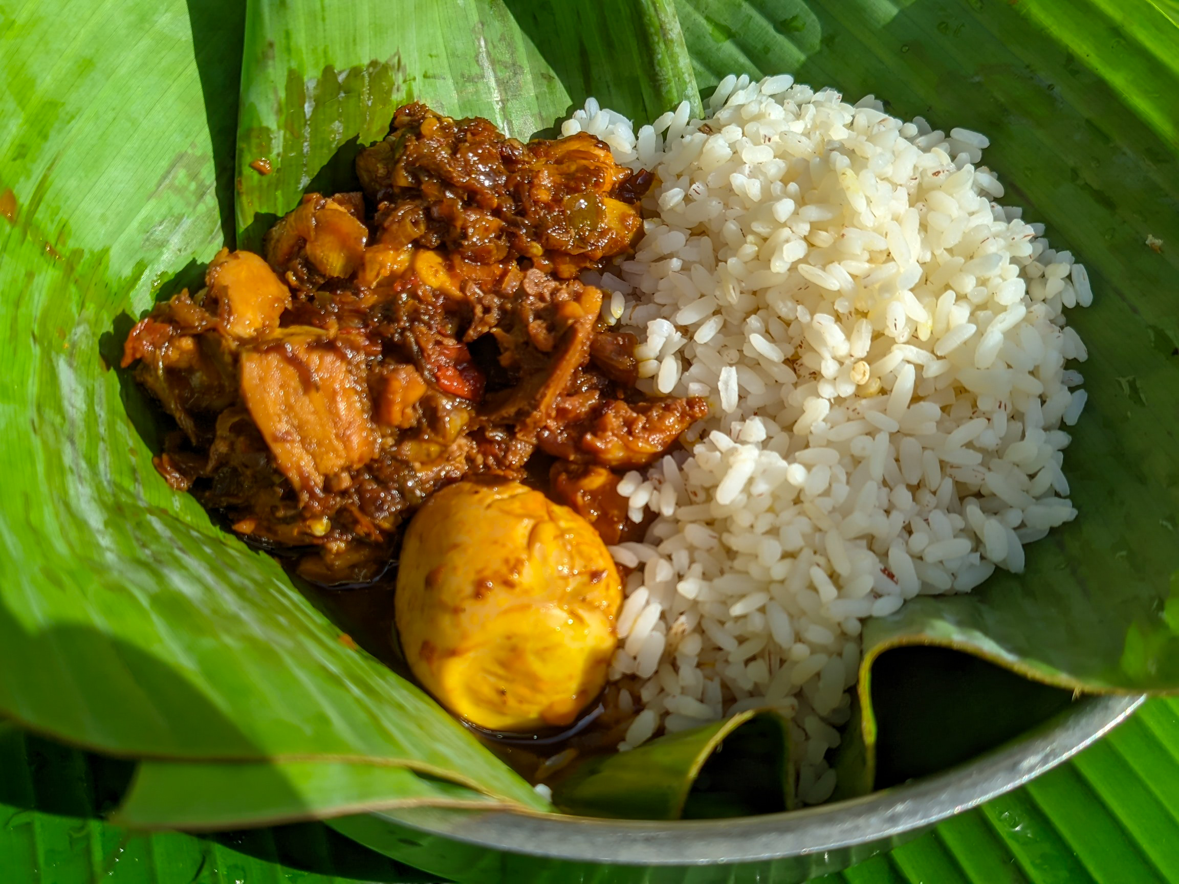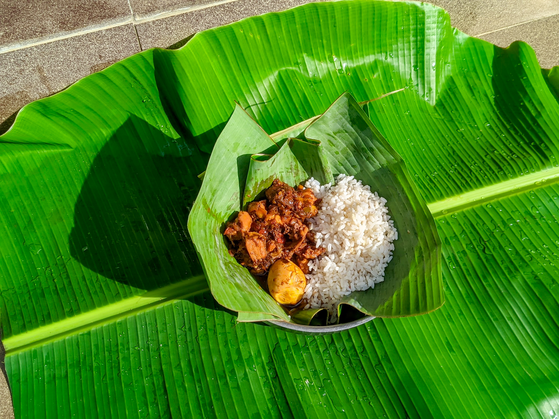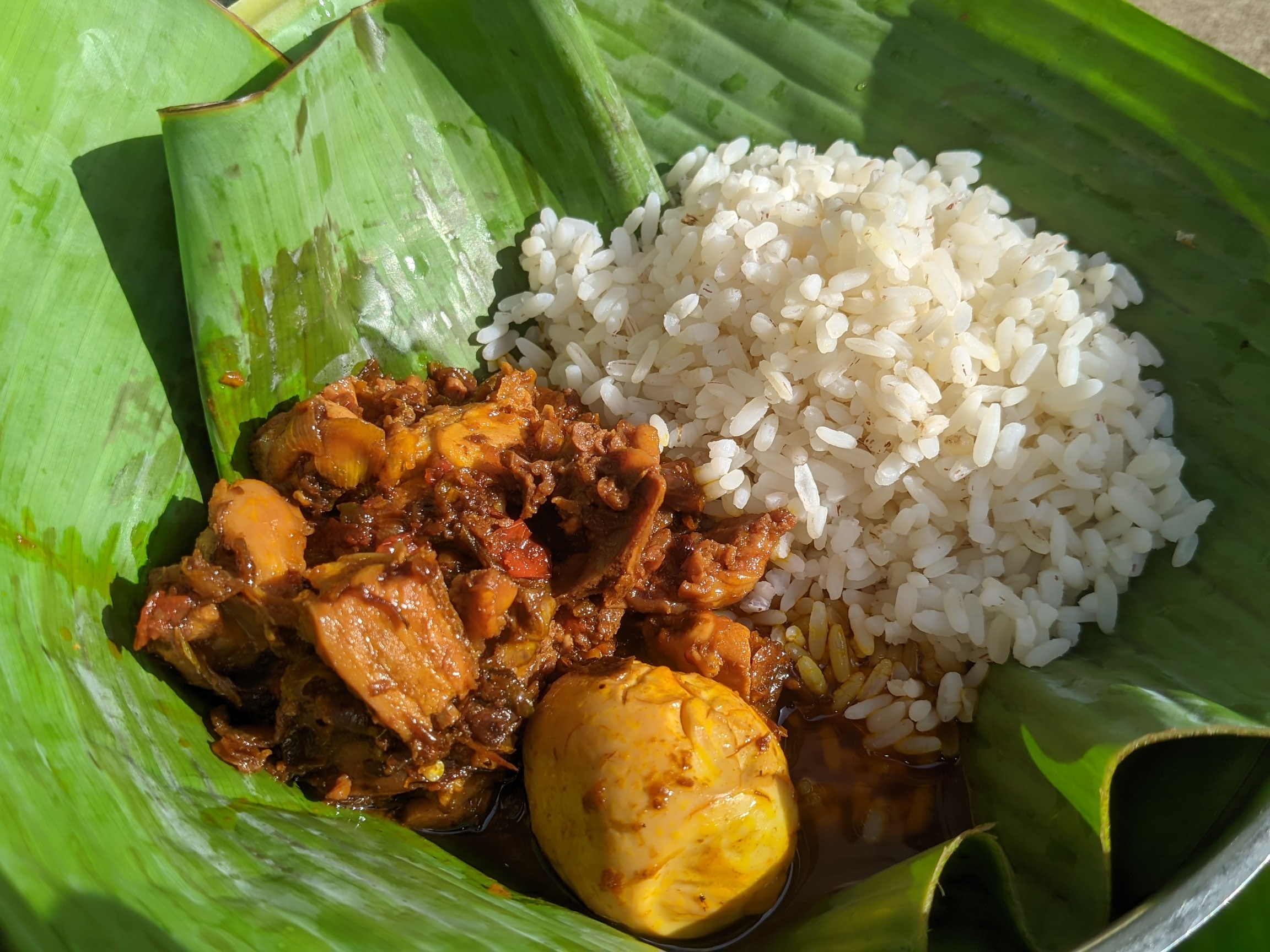 I placed my plantain leaf inside a plate and contained my rice and sauce on one side for a good view. I then took pictures of my food and a selfie with it.