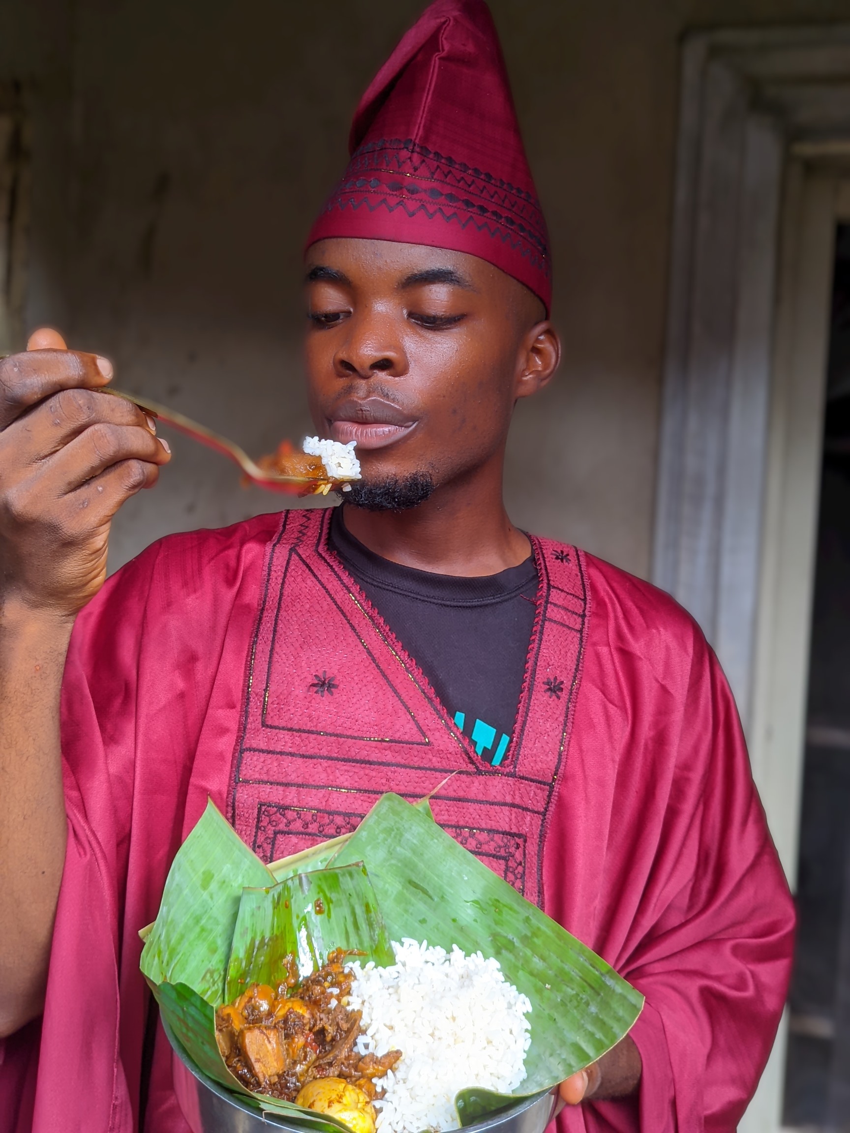So my food is the use of their special type of rice called Ofada which is quite more expensive than the normal type of rice and the use of pepper, red oil and some condiments as sub-ingredients. It's usually eaten in their occasions and not a type of dish that others prepare to except classified under continental dishes
