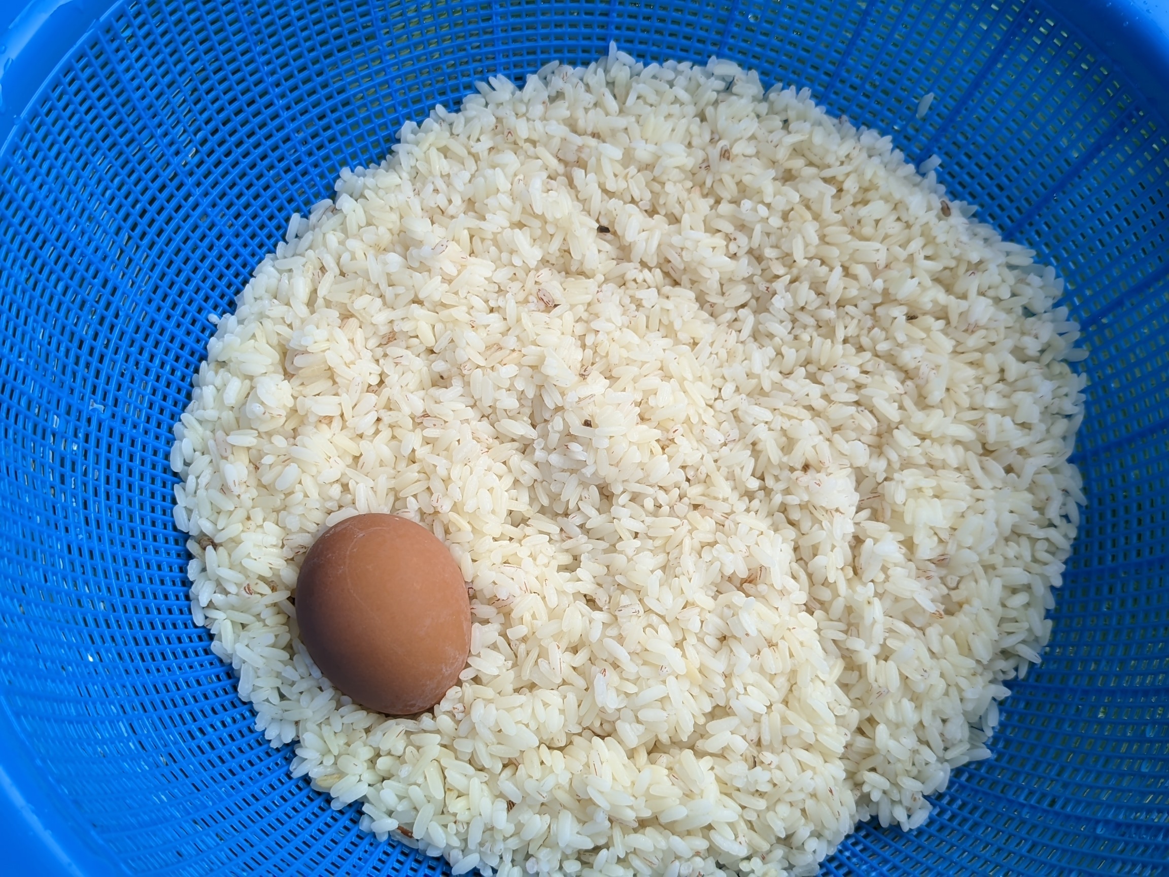 - I started with my Ofada Rice by washing it three times before containing it inside a pot filled with water that's above the rice. I used 2 cups of my Ofada rice and boiled it alongside my egg so as not to waste my gas. While waiting for my car rice to be boiled, I prepared my chicken using the normal way.