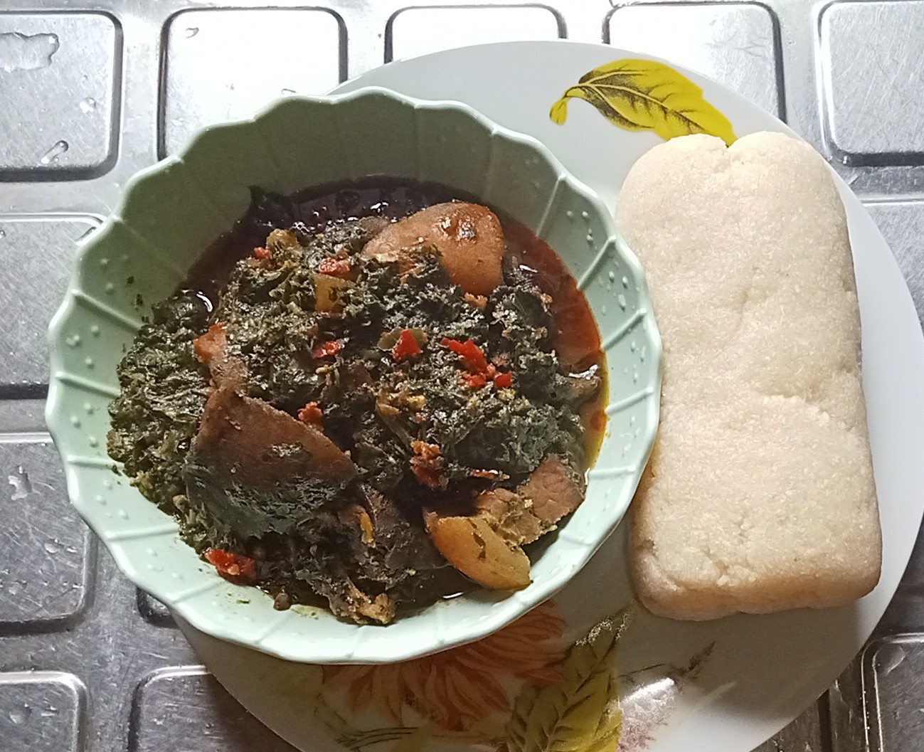 On my way back, I entered market, got some items for preparation of our lunch.lt was vegetables soup and garri,as shown in the picture,it looks yummy and delicious,lt is my hubby's favorite soup.