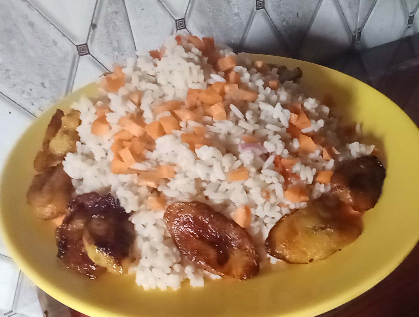 Since,I had a lot to do, He went to the kitchen and kitchen coconut rice with fried plantains. Which became our breakfast and lunch for little princess. I packed her school bag and off they left.