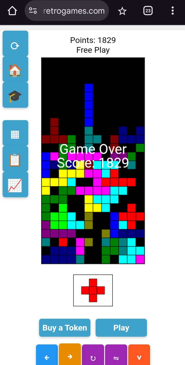 As I'm not satisfied with my play so at the third time I start my game but I noticed today I was so absent minded I try to manage each and every blocks but there is a block of red color that is in the plus sign I find that very irritating I don't know why Because every time he comes on the screen, he ruins the stability of the entire game Also, this block don't rotate.