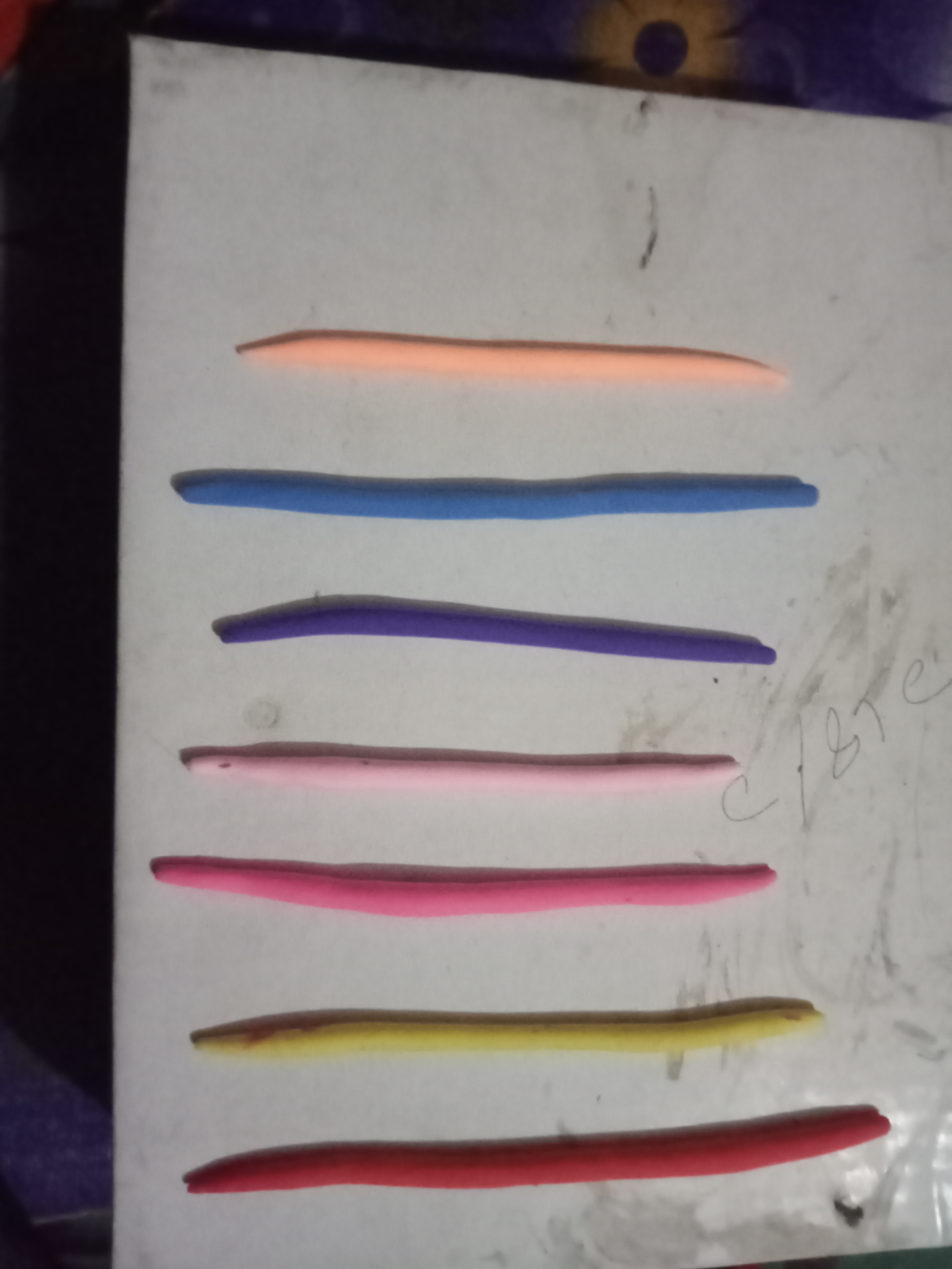 Then I took seven clays of seven colors. And I rolled the seven beautifully and made them quite long. I have shared the picture below. If you see the picture, you will understand.